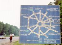 La pancarte aussi ne s'emploie pas souvent en Russie. Elle ne peut pas remplacer une bonne position. Ceux qui veulent la lire n'auront pas le temps. Puis qu'allez vous écrire? Si vous mettez le nom d'une ville assez proche, les voitures allant plus loin vont vous ignorer. Au contraire une pancarte avec une ville distante de 500 ou 1000 km, vous fera passer à coter des voitures qui arrêterons dans 200 km. Alors qu'elles pourraient vous porter à deux ou trois reprises là où vous aller, et pratiquement aussi vite. Les " sages " eux n'utilisent jamais de pancartes. La seule situation où elle pourrait vous servir, c'est à quelques km d'une intersection, juste pour information du conducteur.