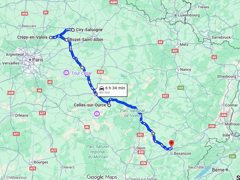 On complète au sud de Troyes, deux palettes, pile poil. Il y a une sacrée trotte jusque là, et pas de route facile. Je me prends du pain à une Marie Blachère à Château Thierry je crois. Toutes ces zones commerciales sont identiques mais je crois que c'est ça. Je mange un bout en 15 vite fait.