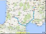 Finalement, à 15h je suis chargé et j'attends encore une vingtaine de minutes les papiers, le type pinaille avec l'ordinateur, mais ils sont d'une gentillesse telle que ça empêche de raler. Du coup, je fonce enfin me debarasser de mes 2 rolls à Jardiland à Agen. Moi qui me voyais me casser rapidos, c'est perdu, je dois encore aller faire une super ramasse dans un garage de la banlieue d'Agen à Brax. C'est tellement le bordel à Agen le vendredi soir que j'ai mis presque 30 minutes pour faire 8km. En plus l'adresse était pas bonne, bref, plan galère pour charger une pauvre remorque avec une barque dessus... Bref, un plan comme on les aime tant chez nous. Mais les gars sont super gentils et debrouillards. J'en ai tellement marre aujourd'hui que ce soir je vais pas loin, bien que j'aurai pû rouler 1h de plus, je me pose au centre routier à Agen ou j'ai très bien mangé, mais nom d'un chien que ça m'arrange de pas parler un mot de français parfois ! Quand je sors de table je tombe sur Max64, dommage j'aurai préféré manger avec un super ptit jeune qui n'en veut que mes ex compagnons de table qui m'ont demoralisé.