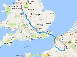 J'hésite quelques minutes et je tente finalement le coup par le tunnel, je dois refaire une 11 ce soir, c'est pas le moment de paumer 4h au ferry. J'ai pas mal fait du reste, j'ai eu du bol et gratté quelques minutes en passant pas au contrôle, c'est une peu l'avantage du plateau, du coup arrivé au terminal à 8h10 et embarqué dans le train de 8h54, rien à dire. Il y a du wifi à plein tube dans le tube ce qui me permet d'acceder à Google Map et voir un peu l'état des routes britaniques, et ce matin c'est vert pomme ! Impeccable tout bien, d'autant qu'il ne pleut pas, ça roule comme du billard jusqu'à Cobham ou je me pose prendre ma douche pour la modique somme de 0£. Même Régis trouve ça presque cher.