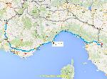 Le soleil fait son apparition après Bollène, mais il y a un vent horrible, il doit pas faire bon camper dehors. A chaque péage il y a bien des contrôles, mais j'interesse pas les douaniers, et j'ai envie de dire tant mieux parce qu'avec juste une palette dans la semi, je suis pas sûr et certain que ça les amuse. Quoi que, ça fait quand même 100% de mon chargement en surgelé. Je me pose pour 45 minutes de repos sur le tout petit parking juste avant le péage d'Antibes, tranquille.