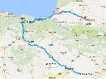 Malgré tout ça, il faudra 3h pour vider, c'est long, surtout quand on doit recharger de la feraille à Amorbieta dans la banlieue de Bilbao. Connaissant la rapidité légendaire des usines à feraille, je crains le pire. Pendant le trajet, je calcule et recalcule qu'il me faudrait au moins rouler 2h après avoir rechargé pour rentrer sereinement à St Peray, au plus tard, il faudrait que je reparte de là à 18h. En attendant, quand je debarque à 13h30 le parking est plein à craquer je crains le pire. Une heure plus tard, je suis en place pour charger les couronnes d'acier, comme le cariste doit charger un Portugais avant moi ça me laisse tout le temps pour preparer un chargement à la Berliner-Bochum-Liner, 13 sangles, les patins et tout le bazar. C'est finalement vers 16h30 que je referme la taut, les papiers sont prêts, les types sympas, la mentalité au travail est vraiment differente ici par rapport à la Catalogne.