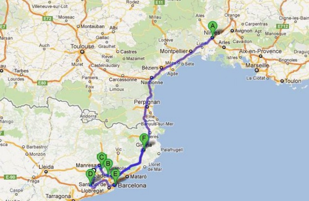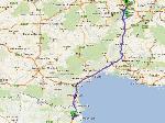 C'est finalement à 13h et des boulettes que je ferme les portes avec 23T de cartouches pour la chasse, pas la peine de mettre les plaques c'est du limited quantities. Avant de décoller je me paye un bocadillo à la Casa San Miquel et c'est parti pour la traversée de la Catalogne via la A2 tranquille pépère, très peu de trafic, et personne pour m'enquiquiner. Je passe Barcelone comme une fleur, d'après le GPS je pourrais aller ronfler à Vaison ce soir, je me pose avec presque 4h de guidon chez Padrosa à Figueras prendre une bonne douche en sécurité. Là, je tombe sur un français qui vient pour la première fois en espagne, il a besoin d'infos pour aller sur Gandia. Echange de bonnes infos, il m'apprend que l'autoroute est quasi bloquée par un camion couché au niveau du Perthus. Big bouchon. Alors plutôt que de stopper juste 30min, j'attends 1h30 histoire que ça se décante.