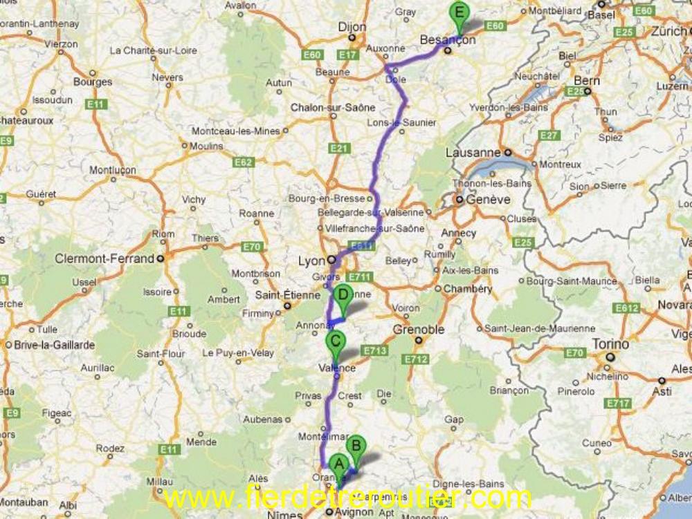 Dans cette usine old school, c'est bien sympa mais pas très rapide. Je suis le même chemin qu'un vieux hollandais qui est dégouté de la tournure que prennent les choses, il a un camion encore plus pourri qu'un Bulgare pauvre, ce qui est rare pour un batave. Une fois chargé, je dois encore monter sur Montélimar pour seulement 2 palettes que mister camion-remorque a pas voulu attendre, je peux rien lui dire, l'autre fois il a récupéré le transpalette que j'ai pas pû garder, mais là, on est quitte, je lui dois plus rien. Je vais quand même moisir une bonne 1/2 heure ici, tous les quais sont pris. De là, je fonce sur Jarcieu du mieux que je peux, le ciel alterne entre averses et éclaircies, un temps de mars.