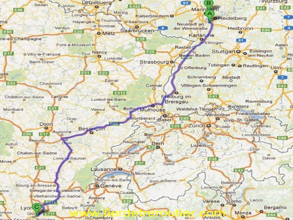 Je me gèle bien les glaouis ce matin au cul de la semi pour faire le pompiste, pas de doutes on est pas en Espagne. Même les rares rayons de soleil n'arriveront pas à réchauffer l'athmosphère. Je traine ma misère comme ça jusqu'à 14h, je remballe tout comme prévu, et j'ai toutes les peines du monde à sortir vu que je suis coincé au milieu des paddocks. Les allemands sont bien organisés, un coup de talkie walkie et je peux reculer en toute tranquilité. Mon plus gros soucis, c'est trouver la taxe MAUT. Et oui, j'ai eu l'adresse de mon rechargement qu'une fois ici, du coup, j'ai pas pu anticiper. Je tente ma chance le long de la N36, mais il y a nib. De fil en aiguille, je me retrouve quasi dans le centre de Manheim, l'endroit me dit quelque chose, oh nom d'une fellation !!! Je vois le panneau Grossmarkt, demi tour gauche, station service, LKW Maut, y a bon Banania ! Au moment de sortir de la station, enorme explosion, c'était drôle de voir le pompiste qui devait peser dans les 300kg en train de fumer son joint à l'exterieur sursauter comme une majorette ! En fait c'est juste un mec qui a gonflé son ballon de foot un peu trop fort. Je reprends mon chemin tout mouillé de chaud pour contourner Manheim et me retrouver dans une zone industrielle dessinée par Ramstein et Nina Hagen. Je me retrouve dans la cour d'un transporteur, personne ne connait le nom de mon client, il y a au milieu de tout ça un cariste alcoolique, un mécano avec de la graisse jusq'aux oreille, et deux meufs maquillées comme des voitures volées. J'ai un numéro de contact, j'appelle, et je comprends "warten 1std" ce qui signifie attends une heure. Ici ?