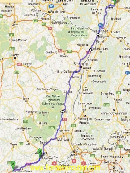 Pile poil 9h de coupure et je demarre, il est déjà 8h20. Je dois pas trop trainet aujourd'hui, il faut que je sois en place à 15h30 à Hockenheim pour faire de la distri sur le circuit. Il y a déjà bien du monde sur l'A36, c'est vite casse pieds, et ça roule un peu n'importe comment. Je croise le père BATA avec son MAN tout neuf bloqué qu'il est derrière un Roumain qui a de la peine à monter, au péage il y a bien sûr les keufs mais je les interesse pas. C'est rare de passer ici sans les voir. Arrivé au centre d'essais de Vaujecourt je suis pris en charge direct, bien sûr je fais aucune photos, de toutes façons j'y connais tellement que dalle en bagnoles que je serai même pas quoi photographier. J'ai échappé de peu à une bonne galère car il y a eu une coupure générale d'electricité pile au moment ou je suis sorti, dans le bureau de reception, c'est la panique générale. Je file rejoindre l'A36 et j'hésite pour l'itinéraire à suivre, Ottmarsheim et tout monter par l'Allemagne, ou Lauterbourg et rester le plus longtemps en France. Finalement, j'opte pour la traversée de l'Alsace. J'ignore encore si j'ai bien fait, mais tout ce que je sais c'est que je perds au moins 30 minutes pour passer Selestat, je n'ai encore pas compris ce qu'il s'était passé. Je comptais couper mes 45 à Karlshue, mais c'est mort je reste 45 à Lauterbourg, j'en profite pour avaler un taboulé au milieu des detritus de cette douane qui tombe en ruine, et qui ressemble vraiment à l'Europe.