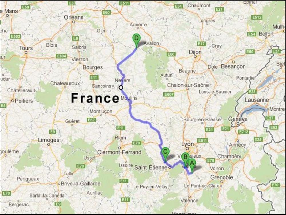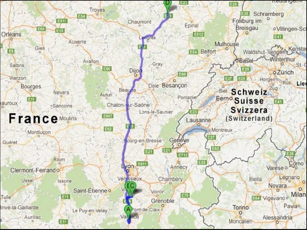 Dernière étape de la matinée sous le soleil jusqu'à Valence Nord, le changement est brutal, il fait moche après. Je décroche à quai en arrivant au dépôt, mais je dois pas trainer. Heureusement Mister ça Déboite est là, il me donne un bon coup de main, car je dois sortir les affaires de mon coffre à palettes de ma Schmitz pas vielle pour une autre Schmitz neuve. C'est ma 3e Schmitz attitrée en 4 ans de maison, j'ai presque honte, mais c'est bon la honte ! Je ne la teste pas aujourd'hui la semi neuve, j'attele une bonne vielle Kogel chargée d'une grosse caisse equivalent à un container 40 pieds soit 12 mètres. C'est pas lourd, bien moins que la feraille, si bien que je monte le boeuf à la régule. Mais je double pas arrivé au sommet, et j'ai bien fait, la gendarmerie veille au grain, plutôt que d'emmerder les touristes en caravane qui font n'importe quoi au milieu, ils jetent leur hargne contre un espagnol qui va manger bon. J'appele le client, mais 11h30, ça l'arrange pas, on se donne RDV pour 13h30, il me donne quelques indications, c'est compliqué, mais je connais un peu le coin quand même vu que c'est à 10km de chez moi.