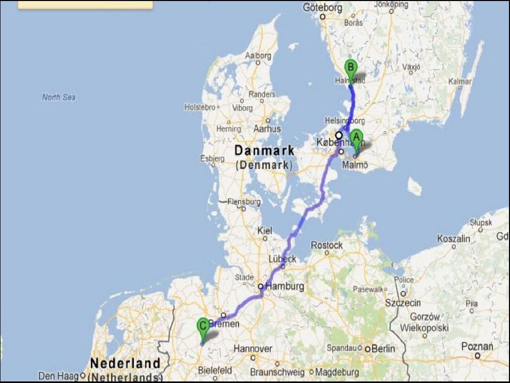 556,3km d'autoroute payante pour rejoindre la Skandinavian Kai et 86€. Pour ce qui me concerne, ce qui fait limite peur c'est que pour réaliser l'itinéraire il y a une liste affolante d'autoroutes à prendre alors que si on trace un trait sur la carte, c'est tout droit : A44, 61, 46, 57, 40, 59, 42, 3, 2, nicht, 52, 43, 1, 226.... Avec bien sûr autant d'échangeurs, et il y en a eu au moins un ou je me suis gourré de file, à refaire, du côté de Krefeld. Si on se trompe pas, c'est pas marrant. Arrivé un peu avant Munster je décide de stopper à un autohof que je ne connais pas, j'y vais en visiteur des fois que ça puisse servir, douches 4 étoiles, bon plan. Je ne suis pas en retard du tout, j'aurai eu le temps de monter via le danemark même, mais je suis un petit joueur. Je vous explique rapidos, j'ai une Ekeri posée sur la selette de mon FH trop magnifique en roues de 70, or avec ces remorques il vaut mieux être en 60, et sachant qu'au Danemark il y a 2 ou 3 ponts assez bas, j'ai pas envie de ramener la semi en kit....