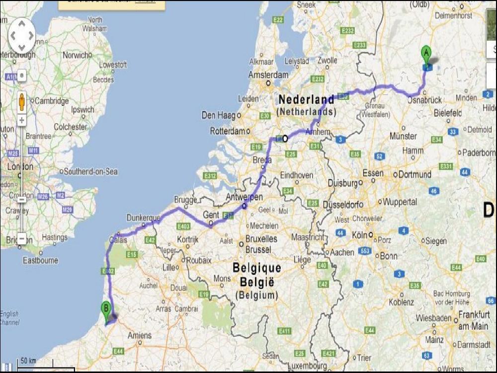 3/4h plus tard, c'est repu et le porte monnaie intact car j'ai sû resister à l'appel de la boutique de Joost, 3/4h plus tard donc je me retrouve au milieu d'un troupeau de camions tous espacés tout au plus de 10m pas plus les uns des autres, j'ai la trouille je garde mes distances et je double un peu de temps en temps quand il y a personne dans mes rétros malgré que ce ne soit plus autorisé depuis 6h. A Anvers ça se corse legerement mais je ne lache pas le 90, je pousse un ouf de soulagement quand j'enquille l'autoroute du soleil belge, celle d'Oostende. Maintenant sauf incident ça devrait le faire. C'est marrant quand même le décalage horaire, ici à 8h il fait encore nuit noire alors qu'en Allemagne il fait déjà jour, vous allez me dire, mais il a decouvert la roue cet idiot, et vous aurez raison, pourtant je m'étais fait la remarque dans mon fort interieur. A la frontière les motards douaniers surveillent, mais personne pour indiquer que FRANCE INTER est en grève, pas d'infos ce matin, comment je fais moi ??? Je fais le crochet à la Total à Calais faire un appoint de gasoil. Entre temps j'ai eu la logistique du client ou je livre, ils sont OK pour avancer le jour du RDV, 2h plus tard je me pointe à l'usine à Feuquières dans la somme, c'est un très joli coin bien qu'il fasse un temps de somme en somme. Mais 11h30 c'est un peu tard pour vider 6 piles d'octobans de joints en caoutchouc, du coup je reste là 3h comme ça c'est fait et avec 8h33 de guidon je vais me poser la bas dans la ZI ou il y a rien que des places reservées aux poids lourds comme moi.