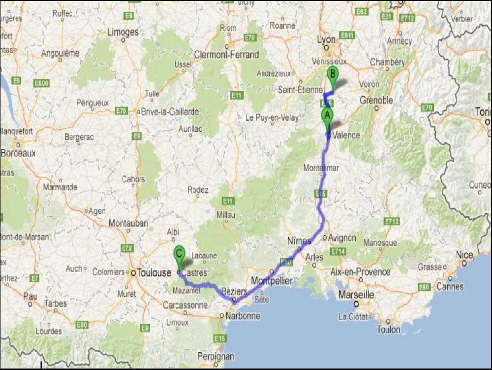 A 16h40 enfin sonne la cloche de la fin des cours, je suis en vacances, au revoir les copains à dans 5 ans !!! Aussitôt dans la bagnole, j'ai un message du chef "reviens au dépôt asap". Bon, j'ai vagement compris dans le message que je devais me magner le fion. Je traverse direction l'Ardèche en faisant ronfler mon v6 peugeot, je fais un mimi à ma chérie, j'avale un café et je demarre mon attelage frigorifique. Bien entendu, vu l'heure, et vu que je suis pressé ça roule bien mal car à 17h30 tout le monde rentre du travail, et en Ardèche on travaille beaucoup ! Je mets 15 bonnes minutes de plus pour arriver à quai, mais Franck est chaud bouillant, on a chargé ma semi complet en 15 minutes. J'ai une tournée fort sympathique, facile mais tendue... Au bout de 4h de guidon j'arrive à Ambrussum, j'arrête là une trentaine de minutes. Je susi bien dégouté, j'ai un led grillé dans le spoiler, et le pire c'est que la station est envahie de types louches et patibulaires. Il y a des moments ou ça devient craignos la quartier....