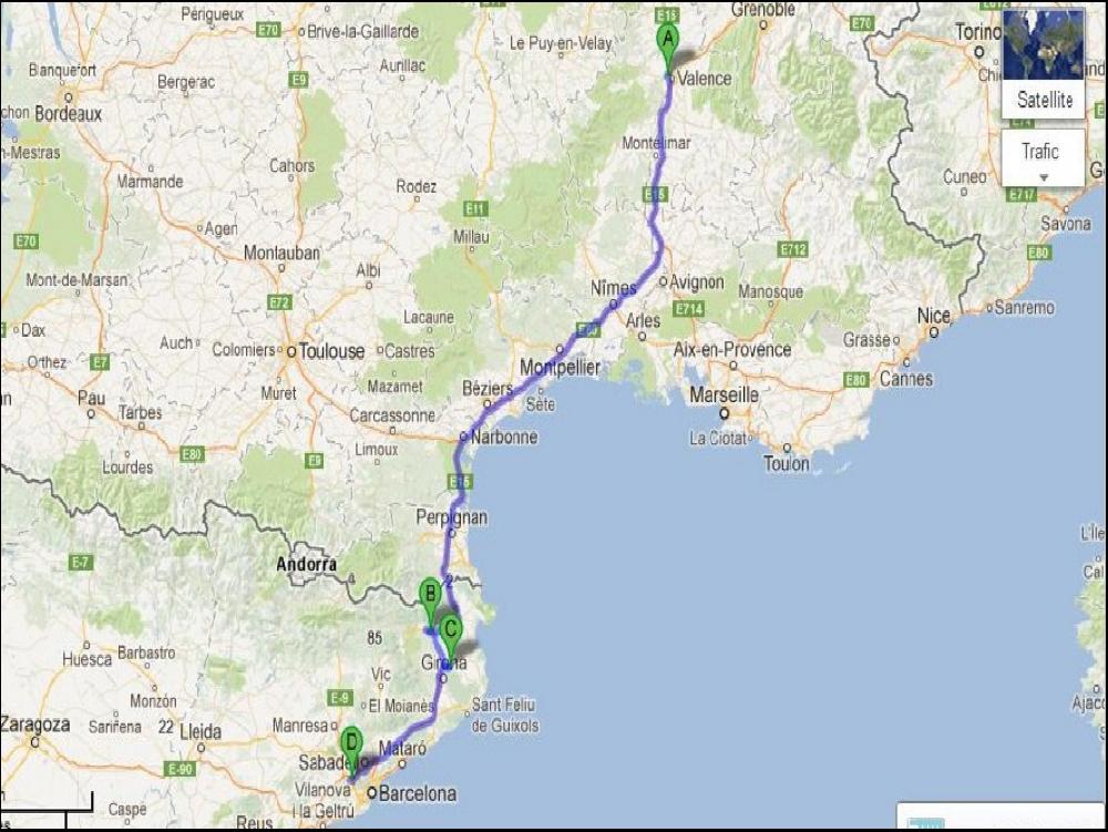 Le reveil ne m'a pas oublié ce matin à 4h30. J'ai eu bien du mal à sortir du pieu, mais je me suis fait violence. Il faut dire que l'idée même de sortir de Barcelone avec un trafic proche du 0 m'a fortement motivé, il m'en faut peu en fait. En montant je me suis arrété sur l'aire de Montseny pour chercher la pompe à Nico. J'avais l'air malin à chercher avec ma lampe torche sous les camions, et puis finalement je l'ai trouvé à quelques centimètres de la roue d'un MAN, elle a eu chaud à la languette la Nike ! J'ose même pas imaginé ce que j'aurai raconté aux mossos s'ils m'avaient vu avec ma lampe. Comme j'ai déjà bien bossé, je me suis offert un café à Figueras et à 7h30 je suis arrivé chez un transporteur spécialisé exceptionnel à Pia.