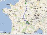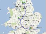 En fait j'ai sû au resto que la PO était en grève. J'ose pas imaginer ceux qui ont déjà perdu 48h dans les blocages arriver là et se trouver planter par les grevistes de la PO... Là, y a de quoi se l'attraper et se la mordre ! Faut être souple mais bon. Une fois n'est pas coutume, je sors aussi le premier, à la régule dans le port de Douvres, et pareil jusqu'à Londres et même après. Je stoppe au 1er service sur la M11 hitoire de faire le point et de me payer un bon café degueulasse. Si je mets moins de 3h40, je reste dans mes 9h de guidon, à priori ça doit le faire. L'A1 est hyper calme, je roule à 90 quasi partout. Mais voilà, il ne faut jamais tirer de plans sur la comète, la sortie 24 est fermée pour travaux nocturnes, la suivante est à 13kmn shit. Comme par hasard. Du coup, plutôt que de revenir sur mes pas, je tente une autre route, celle qu'on voit en contrebas de l'autoroute qui a l'air si jolie. Effectivement, c'est bien sympatoche mais pas très rapidos. De toutes façons, je m'en fous, j'ai cramé mes 9h, alors les cramer de 10 min ou 20 min ça change rien... A 0h30 locale, je suis dans la rue de chez Rodia, j'en ai plein les bottes, hasta manana !