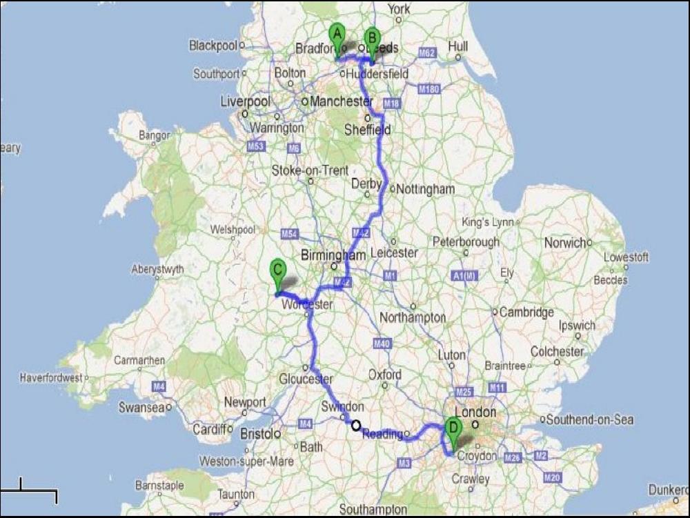 A 17h je suis chargé, je connais pas le poids exact, mais ça tire. La route qui me mène de Tenbury Wells à Worcester est très jolie et pittoresque, mais ça grimpe dur par moments, si dur que parfois, je passe l'étage, merci la boite auto. Pour rejoindre Swindo c'est bien compliqué, et une fois à Swindon ça bouche sur 5km avant la M40. Vu que ça me gave vite fait, je me pose sur un parking de rien du tout pendant que ça se decante et j'en profite pour casser une croute. Une heure plus tard à peine, le bouchon a disparu et 2 min plus tard je suis sur la M40. Il tombe toujours des cordes, et dans l'autre sens l'autoroute est pleine sur les 3 voies. 2 accidents entre Swindon et le M25, sacré vendredi soir. Je me pose au nouveau service à Cobham, j'aurai pu rouler encore une heure, mais ça changeait pas grand chose à mon planning, et puis au moins, je prends pas de risques de pas trouver de places au parking suivant. Par ici, ça court pas les rues les parkings... Ici les douches sont gratuites et en libre service, ça va pas durer longtemps, vu le passage ça va vite être destroy.
