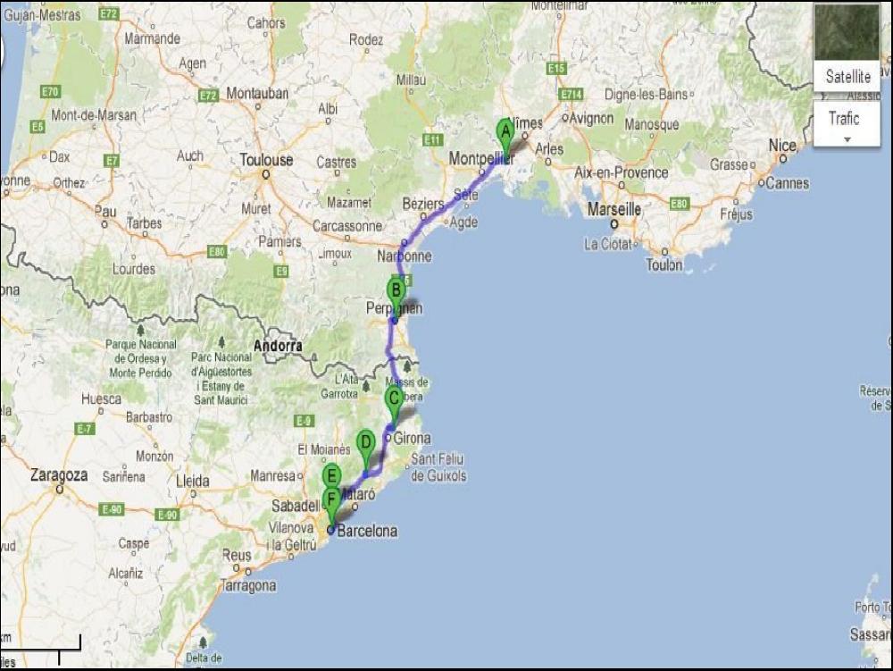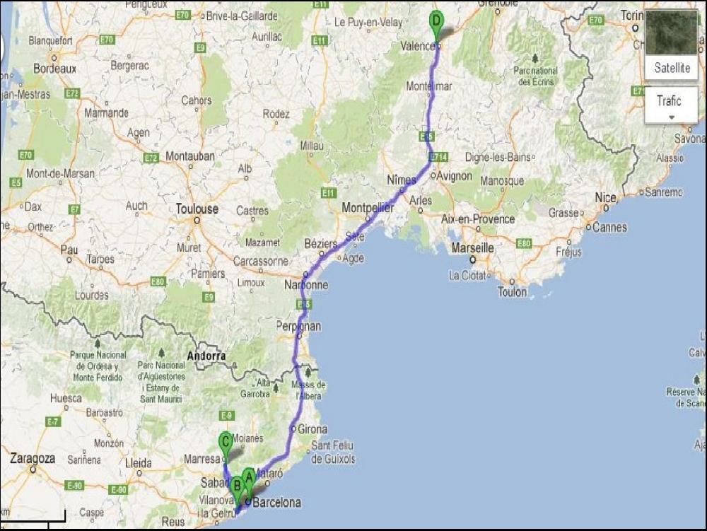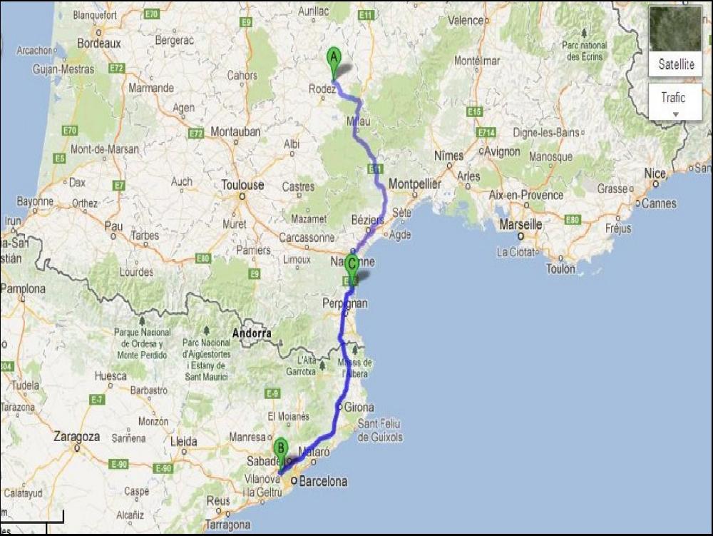 Pour la suite, c'est assez simple, une fois déballé je dois traverser Barcelone plein sud pour aller à Viladecans, mais l'accès à la Ronda Littoral est bouché, alors je tente le plan B par la déviation obligatoire aux PL de +12m, et finalement ça roule nickel tout en faisant du tourisme, la preuve, 25 minutes pour arriver chez le client. Contrairement à hier les livraisons se passent nickel, les jours se suivent mais ne se ressemblent pas... Le dernier client est une formalité puisqu'ici ils gardent en mémoire les enregistrements des camions pendant un an, et qu'il font la pause petit dej à tour de rôle ! IMPEC. Je fais juste 3km à vide, et je recharge un complet ADR à Castelgalli. Remontée tranquille tout par autoroute bien sûr. Petite pause à Narbonne comme d'hab, et j'ai plus qu'à me jeter dans le trafic du vendredi soir. Je debarque à 21h à la maison, un vendredi soir, c'est le pied... Malheureusement j'ai appris le cancer d'un super pote citernier, il va s'en sortir parce que c'est la yellow power !