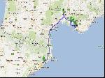 Il y avait bien longtemps que j'étais pas parti un dimanche soir. C'est pas que ça me manquait, mais aujourd'hui, c'est tombé comme ça. Bien évidement je suis parti en ayant oublié de faire la sièste et la descente risque du coup d'être bien longue. C'est bien fait pour moi j'avais qu'à anticper. Le trafic est ultracalme sur la descente et la montée aussi, c'est ça qui est bon. En descendant, ça devient de plus en plus compliqué de se poser pour le café vu le nombre croissant de stations fermées la nuit. Pour changer, j'ai tenté Vinassan, bien que je deteste vu qu'il y a pas de place. En repartant au bout d'un quart d'heure, je suis abordé par un être humain en slip soutif qui me propose une gaterie, ça surprend quand même... J'ai décliné l'offre : "Tu sais pas ce que tu rates !" et ben non, et je le saurais jamais ! Pour finir, je me pose au village catalan, y a plus que les ruines de la station, j'ai rien d'autre à faire que de dormir 20 minutes.
