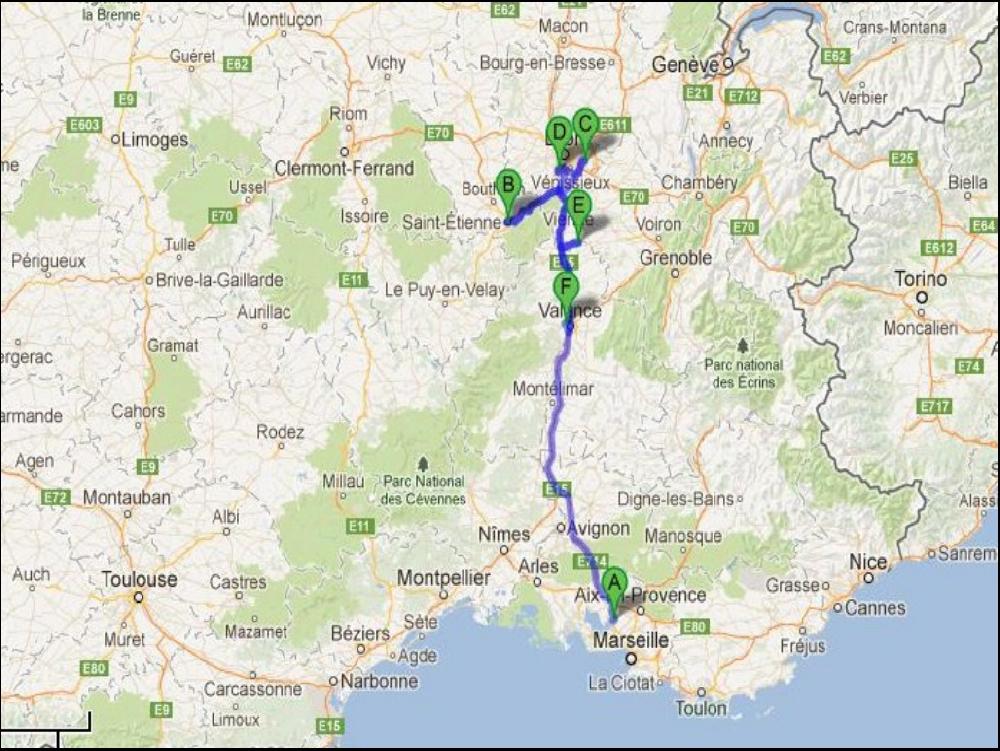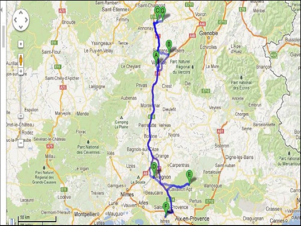 Quasi une heure pour poser 2 palettes, mais les 2 quais de recepetion étaient pris, c'est pas dramatique. Je sors vite de la cité des papes plein EST pour rejoindre le Lubéron et la bonne ville d'APT, au passage à Coustellet j'attrape mon père avec moi que je vois pas souvent et je fais l'aller retour avec lui, histoire de papotter un peu. J'ai pas le temps de trainasser, malgré tout car il me faut aller charger dans un joyau de l'univers logistique à Miramas. Une incroyable ville dans la campagne d'ou rentrent et sortent des centaines de camions par jour, mais dont l'accès se résume à une route étroite et defoncée quand on sort de l'A54, j'ai jamais pigé pourquoi ! Il me faudra quand même une heure pour charger, en plus je tombe sur un célèbre journaliste de la presse qui roule encore pour arrondir ses fins de mois, et décidement, on sera jamais sur la même longueur d'ondes.