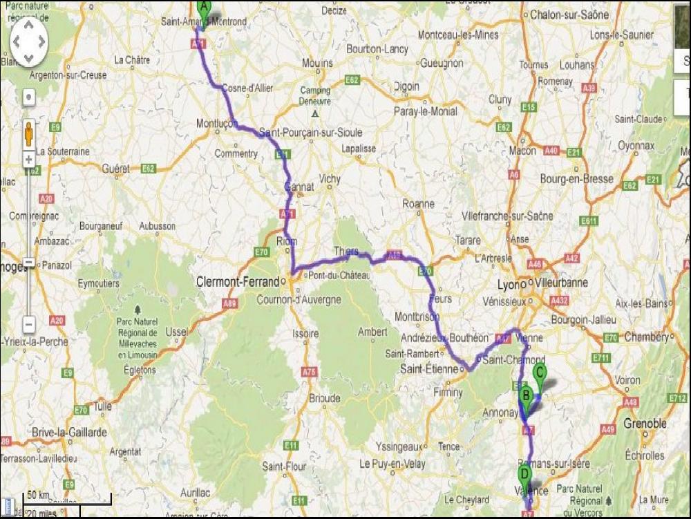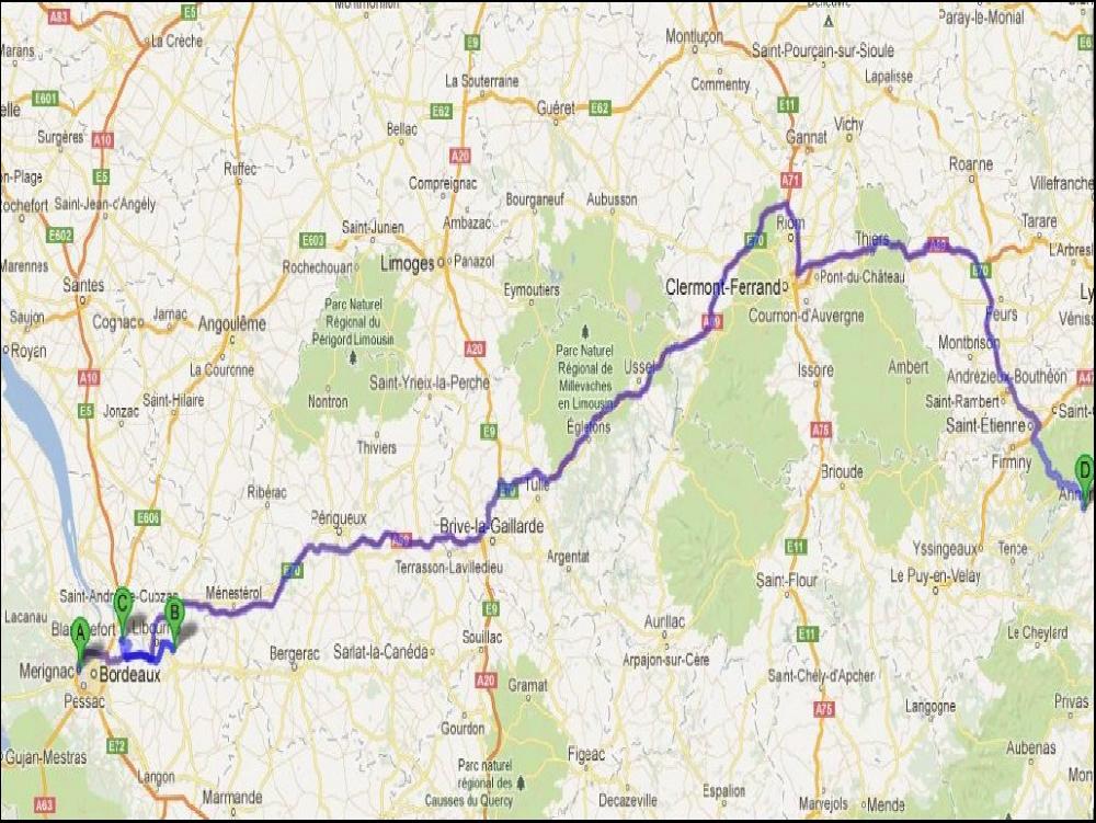 Et puis une autre drame est arrivé, c'est Franck qui m'a annoncé la nouvelle, mon gyrophare gauche a rendu l'âme. Je pensais bêtement que ça serait une courroie ou une bricole, mais non, le moteur ne donne plus aucun signe de vie, il est cuit alors que pourtant il n'a quasiment jamais servi. J'ai fini par partir à quasiment midi avec mes 3h de coupure sous le bras, en écoutant incrédule, les infos. Heureusement pour moi, j'ai un excellent voyage qui me fait traverser le massif central pour rejoindre Bordeaux. Je voulais couper par Boen pour rejoindre Thiers, mais j'ai loupé la sortie comme un con. J'ai du coup continué par l'autoroute, mais je l'ai vite quitté à Clermont. Coupure de 45 au niveau de Ussel, mais sur l'autouroute, tant pis.