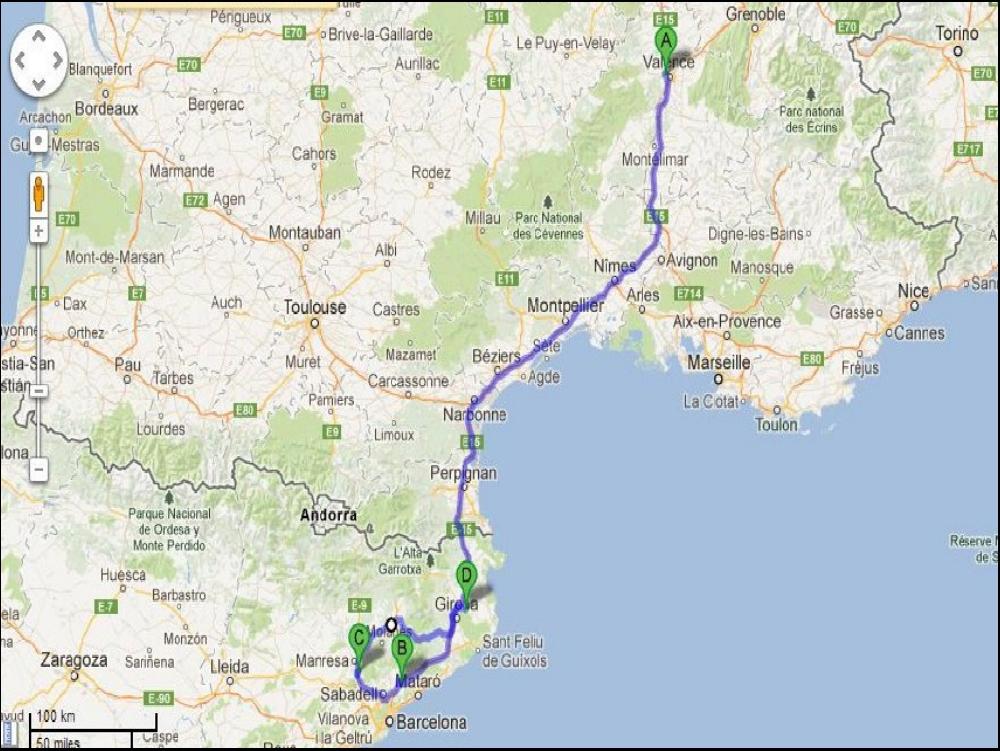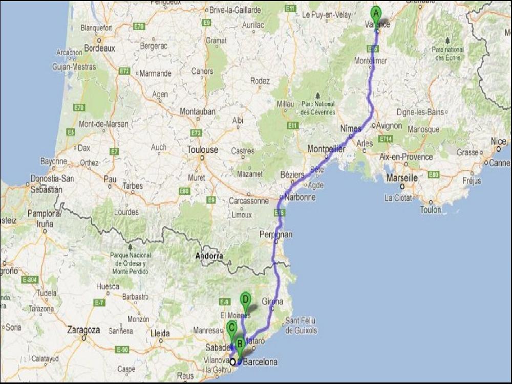 A 20h15 j'ai mes 9h de coupure, et je peux enfin décoller. Je serai bien resté au pieu, mais le museau ça n'attends pas. J'ose pas dire qu'il tombe encore et toujours des cordes sur la Catalogne. A ce propos, hier soir avant de partir j'ai regardé le bulletin météo du coin, j'ai 2 adresses, celle de la chaine météo, et une un peu plus sponsorisée touristes, c'était écrit : Lundi, risque d'averses... J'enquille donc la C25 magnifique et deserte, dans les côtes ça tire et des les descentes ça pousse !!! C'est lourd le museau ! Je m'arrête vite fait à La jonquera attraper une cartouche de clopes et un café, arrivé à Loupian, j'ai 3h30 de guidon, je mets le webasto en route et je dors ma demi heure.