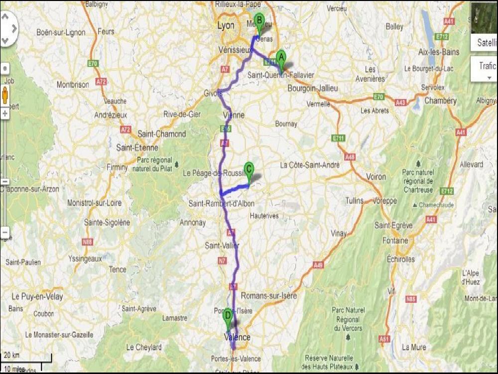 A 20h je remets en route, tranquille et je perds pas ma vielle habitude via Ultramort car ça roule nickel. Une fois sur la N2 à Figueras, je tombe derrière un roumain qui fait du zèle en roulant à un petit 70, immédiatement une longue file se crée derrière, no stress le type !... Comme d'hab je prends mon café à Vinassan trop content de raconter ma rencontre de la veille à la caisse. Un bon quart d'heure à rigoler, ici, c'est pas les histoires et anecdotes qui manquent, un jour le caissier s'est fait quasi agresser par un routier espagnol qui voulait absolument avoir une prostitué pour le week end, car il venait juste d'apprendre qu'il venait de se faire larguer par sa femme... Ah y a des vedettes ! Tout ça me ramène à Tavel ou je fais ma dernière 1/2h. Sur la station se joue une scène qui peut preter à confusion. Il y a deux petits jeunes en survet qui ont prépayé du carburant, mais leur voiture est garée à l'exterieur de la station, comme ils n'ont pas de jeerikan assez gros, il font des allers-retours en courant entre la pompe et le parking dehors. De loin et sans info, on pourrait très bien les prendre pour des voleurs....