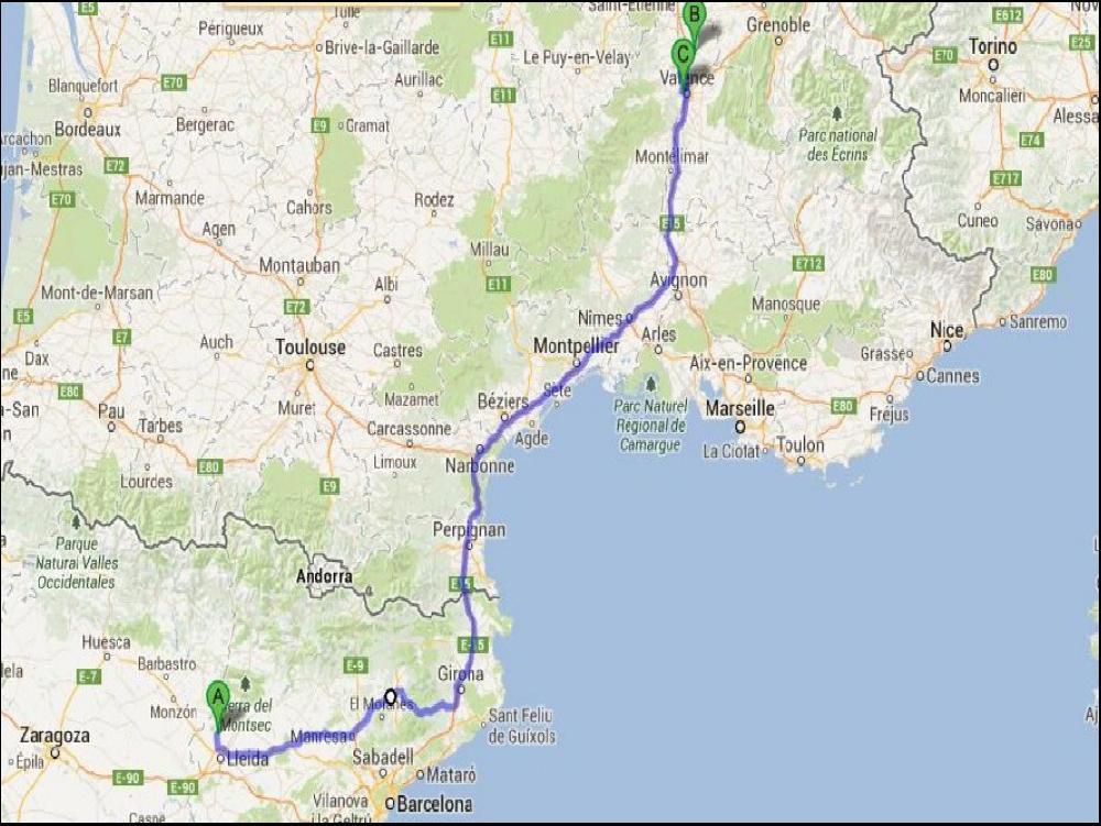 Finie la rigolade, à 3h on décolle avec Sweden, calés sur le 7. Et oui, on ne se quitte plus, on est un vieux couple. Comme tout vieux couple qui se respecte, il y a des tensions, moi je roule pas assez vite, j'ai une régule pourrie, mais au moins j'avance dans les côtes. On ne peut pas avoir que des défauts. Ce gros fénéant de Suédois se décide enfin à s'arrêter prendre le café, en vrac sous les pistes à Fabrègues, vraiment, il est d'un sans gène, et je suis même obligé d'en faire autant, alors que c'est pas mon style du tout. A 7h du matin, on finit par rejoindre La Jonquera, on se gare le long de notre transitaire et on file coincer la bulle une petite heure en attendant l'ouverture. Les filles sont presque pas en retard ce matin, à 8h15 on pose les papiers, on a 30 minutes devant nous pour boire le café et manger un Donut qui a connu des jours meilleurs, beurk. Il fait un peu frisquet, mais c'est avec un genereux soleil qu'on trace jusqu'à Les Franqueses. Pour gagner 5 minutes je prends à moitié l'itinéraire ADR, j'ai que deux palettes à poser, malheureusement, en tirant la deuxième avec la barre un peu trop rapidement, le cariste a fait la boulette du jour, et j'ai eu la trouille de prendre la palette sur la tête. Entre temps, le suédois arrive, accompagné d'autres caristes et la palette et remontée en 2/2. En plus le pauvre Antho livre pas ici, mais chez un transporteur à deux pas de là ou je fais ma seconde livraison à 2km d'ici. C'est là que nos chemins se séparent en ça fait tout drôle de se retrouver tout seul !
