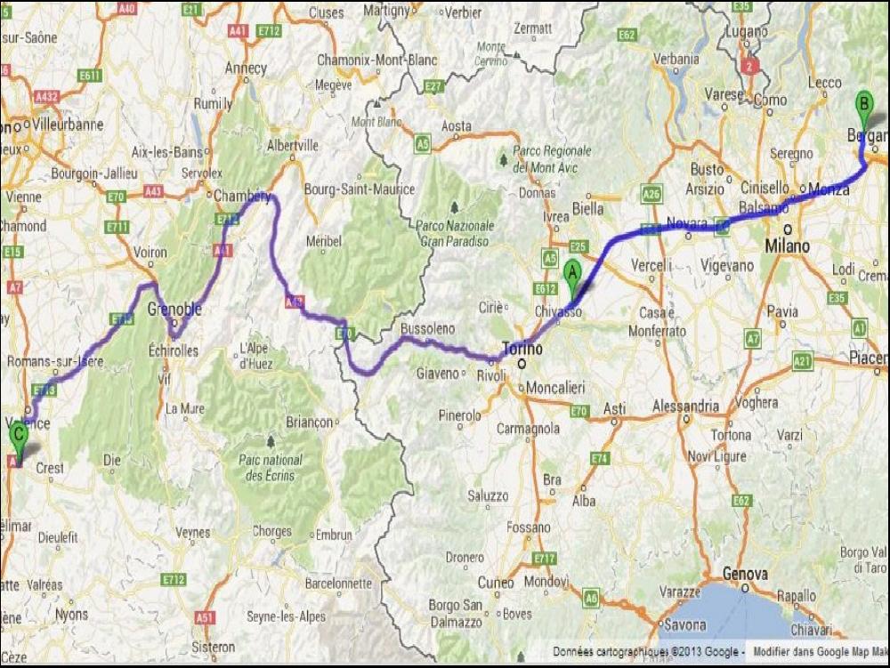 Une grosse 1/2h plus tard je suis vide, et surprise, je dois retourner en Italie, pour recharger à Bergamo demain avant midi. Ah ben, ça, je m'y attendais pas du tout à celle-ci ! J'hésite, tunnel, montagnes ou nice. Finalement je joue la carte de la sécurité, Tunnel. Après une laborieuse sortie d'Aubenas et encore pire de Le Teil, je rejoins vite l'A7 à Montélimar Nord, j'hésite pour faire le crochet par la maison, mais ça serait pas raisonnable. Je rajoute un peu beaucoup de gasoil à la Esso d'Alixan et je me pose une grosse heure après Romans histoire de laisser passer le plus gros de l'heure de pointe du soir à Grenoble...