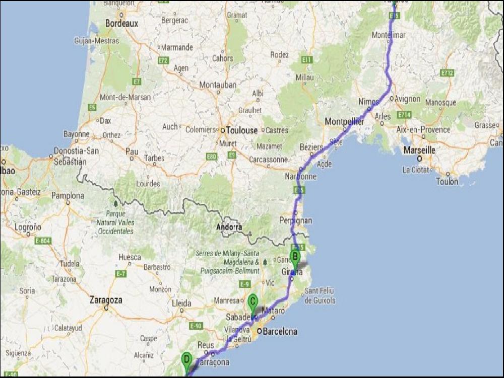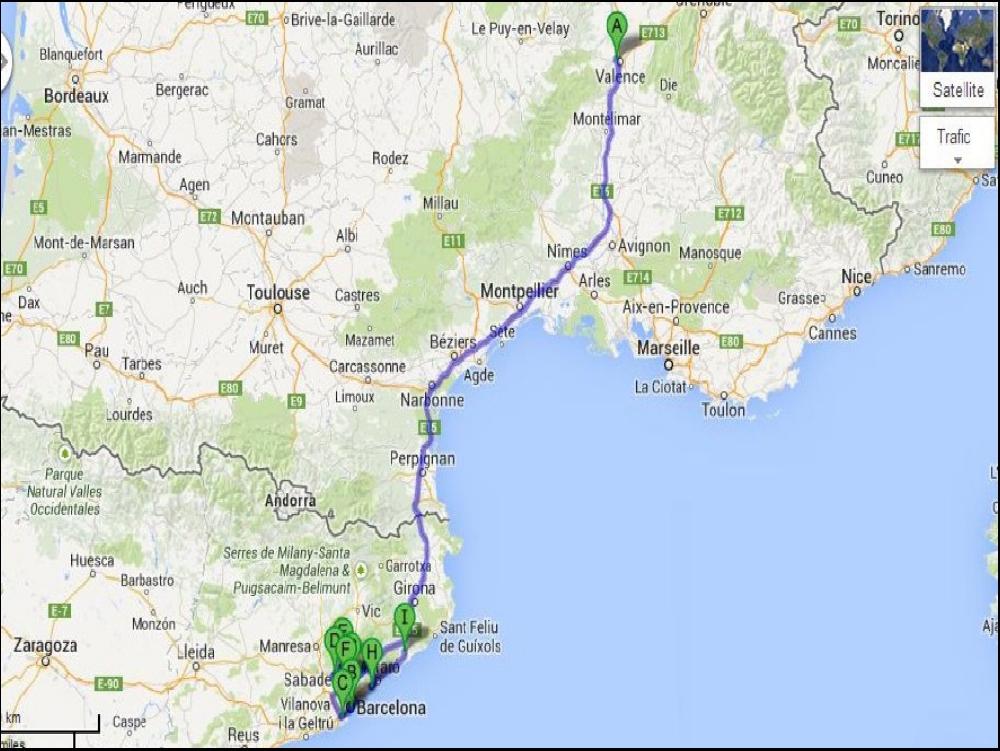 Avec la chaleur, je manque un peu de sommeil quand même, je m'arrête faire une demi heure de sièste en montant. Un petot arrêt douche et popo à Altafulla, j'ai presque hésité à aller me baigner, mais j'ai des obligations professionnelles. Plus je me rapproche de Barcelone, plus ça roule c'est normal. Ce soir, je mange chez Padrosa à Figueras, toujours les images affreuses à la télé, le conducteur aurait pris le virage à 100km/h de plus que la vitesse prévue, sacré excés de vitesse quand même. Quand je sors de table, j'ai envie de fumer, c'est affreux, je vais jamais tenir 5 jours !