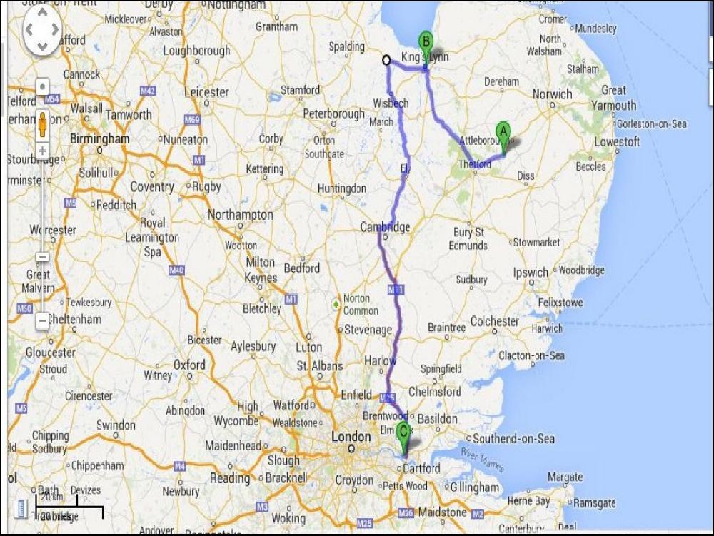 Ce matin, c'est pas la même chose qu'hier apreme, je sais d'avance que ça va être speed ce matin, alors, j'avale un café, une clope et à 8h j'ouvre la boutique. La plupart des concurents sont contents de me revoir, et c'est reciproque, ça blague sur la météo anglaise, bref c'est trés bon enfant... Je suis tellement debordé ce matin, qu'il y a même un gars qui a eu pitié et qui me ramène un café sans que je demande rien ! Je kiffe la life !!! Vers 11h enfin, ça se calme je peux dans un 1er temps fumer ma seconde clope de la journée et faire le point, commencer à ranger, remplir des tas de paperasses et aller tirer les oreilles à ceux qui ne sont encore pas venus se servir, car à 14h petantes, je ripe. Une fois les derniers retardataires venus, je peux tout fermer, et comme prévu, à 14h je bouge direction Kings Lynn. La route est vraiment très jolie, je connaissais pas. Par contre j'ai déjà chargé la ou je vais, une usine ou on fabrique des refrigérateurs de toute taille et surtout pour les collectivités. Pour y aller j'ai traversé tout Kings Lynn, c'est pas très malin, mais tellement joli !