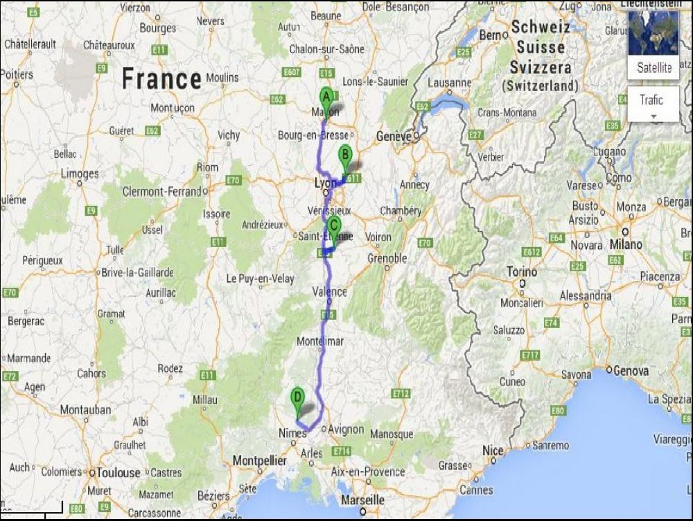 De là, je coupe à travers champs pour rejoindre Chazay d'azergues, magnifique pueblo du Beaujolais, ça me fait couper par Chasselay, j'adore le coin, et quand il fait beau c'est encore plus joli, on a du mal à se croire à 20km de Feyzin. Je pensais devoir attendre en arrivant à 13h à l'usine, mais le cariste était au boulot, il m'a dit qu'il me chargerait et qu'il irait manger après. Le pire c'est que j'avais mis 10 palettes sur le côté droit pour laisser de la place à gauche, mais c'était sans compter que c'était des palettes de 80*80, donc pas possible, mais le cariste, il a dit, T'INQUIETE, je vais tout sortir et je remettrai tout dans l'odre. Le gars est pas loin de la retraite et en discutant j'ai compris que c'était un ancien routier qui aimait pas emmerder les autres routiers, au fond de moi je me disais, merde, ça existe encore des gens comme ça ? A 14h c'était bouclé, le cariste a pas voulu de café, que dalle, et j'avais donc plus qu'à continuer via le Beaujolais et Anse. Arrêt à Belleville pour remplir un peu le frigo, et arrêt sieste à Dijon. Entre la chaleur et le calage de regule à 80, j'étais ensuqué, pourtant c'est pas l'animation qui manque sur l'A6 aujourd'hui, des accidents, des radars de partout...