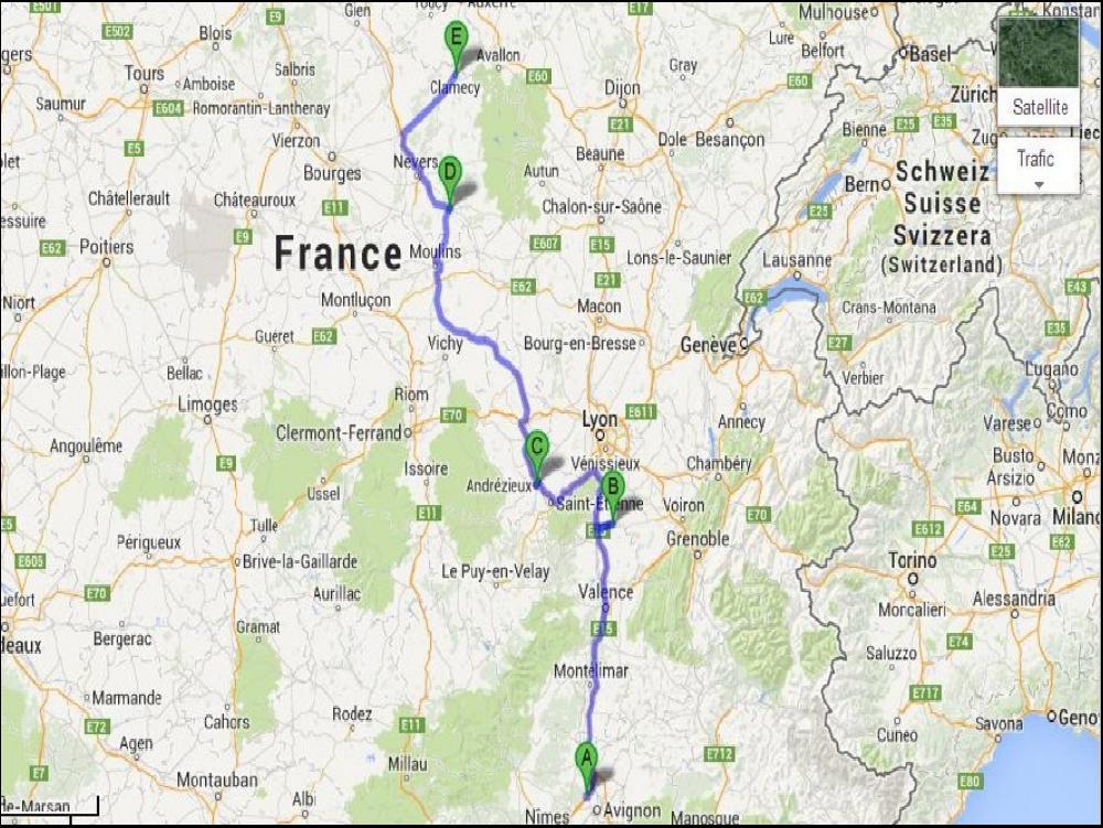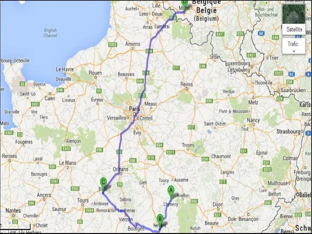 En montant je fais un bon petit reopas tranquillos au Double D qui s'appele plus le Double D, mais ou on mange toujours aussi bien, et c'est ce qui compte... Reparti de la la panse pleine, je me retrouve derrière un convoi de 3 routmans modernes, le premier traverse les villages à 30/40km/h et dès qu'il sort, pied droit au taquet impossible à doubler. ça dure quand même jusqu'à Moulins la plaisanterie, et je crois être zen mais ça ne dure pas. Je croise Cyril de chez Jacquemoz qui m'averti sur le 19 qu'un peu plus loin il y a eu un gros carton et en reste un enorme bouchon. Je quitte la 7 en catastrophe et je coupe par Decize, c'est magnifique le coin, moins rapide mais trop joli. Je reste pas zen très longtemps car, alors qu'il n'y a aucun trafic, je rattrape un convoi de 4 tracteurs en solo, qui rament comme c'est pas permis, ils arrivent même à me couper les pattes dans les côtes. Mais rien à faire, aucun n'a l'idée de laisser passer, des purs trous du cul. J'arrive quand même à presque 23h à Clamecy, chaud et enervé. Heureusement, il y a là ma salle de bain, un bonne douche me remettra d'aplomb.