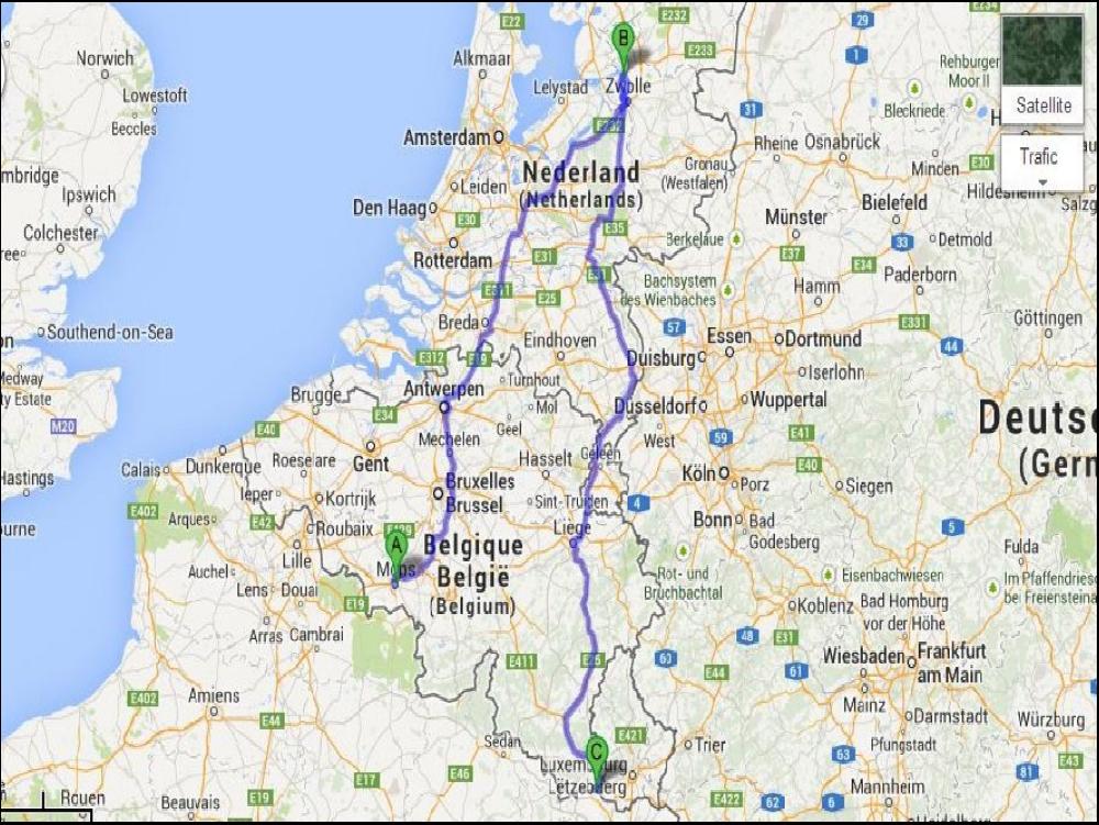 Aussitôt vide, je prends des news de mon avenir, et je recharge du côté de Zwolle en NL ; non, c'est pas une blague et ça fait une trotte... Alors je roule un peu et je me pose juste un peu avant la région francilienne. Je fais 3h de coupure en attendant que l'heure de pointe passe. Je me cale sur Sytadin, et les kilomètres de bouchons cumulés s'affichent en direct, c'est classe quand on y est pas dans les bouchons. Comme j'ai bien calculé, ça baisse quand je décolle et j'ai passé la RP quasi à la régule. Oui je sais, c'est incroyable, mais pourtant c'est vrai. Du coup j'ai gagné bien du temps et je continue d'ecraser la pédale de droite avec juste un stop à Graincourt Les Havrincourt, non pas pour dire bonjour à Mimile, mais pour acheter 2 jour de taxe Belge à la AVIA. En route je croise un FDR du 44 qui m'a appelé sur le 19, mais j'ai mal entendu son nom... Au niveau de Mons, j'ai mes 9h, et il y a une friterie, sauf qu'à 23h elle est fermée, c'est bien dommage.
