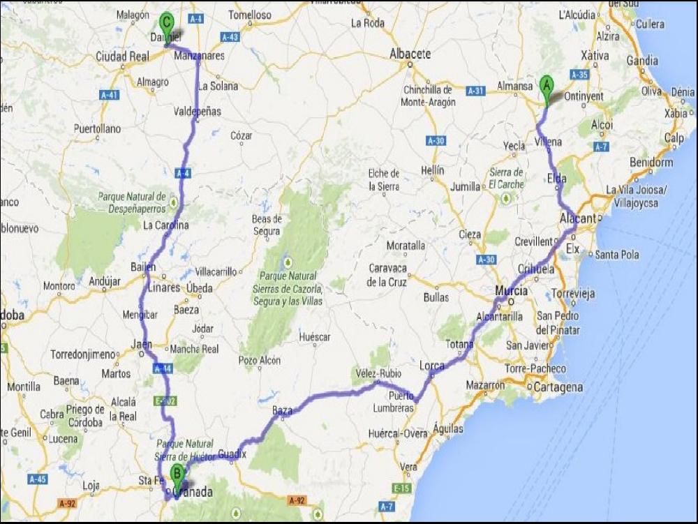 La plupart des camioneros ont deserté le parking avant moi ce matin, oui, je suis une grosse feignasse, mais y a pas le feu au lac, alors à quoi bon se presser ? Je prends le temps de dejeuner tranquillement, et puis je demarre tranquillement. Il va faire très chaud aujourd'hui, inutile de se faire venir la transpiration ! Niveau trafic ça roule quand même pas mal dans le quartier, surtout sur la côte vers Murcia. Une fois sur l'A92 c'est enfin plus calme et je peux me detendre, le décor ici est toujours un régal, surtout quand il fait trés beau et chaud comme aujourd'hui. En moyenne on est rarement en dessous de 1000m d'altitude, ça monte même à 1380 avant de basculer à Granada. En bas, c'est étouffant, il fait un petit 35. Heureusement, un fois arrivé à Cenes, je peux me mettre en place pile au bon endroit sans avoir à bouger les palettes dans des boxes trop éloignés. Une suée et un coca cola plus tard et je me sauve.