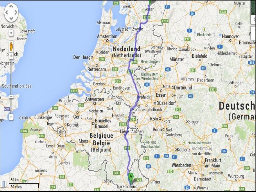 Mauvais calcul à 5h ce matin ; je me retrouve avec un autre type aussi gros que moi devant la porte de la cafétaria qui reste deseperement fermée, on se croirait à Tavel, c'est fermé jusque 7h, même l'été ! Bon, je pars donc sans café, je suis un looser. Pour me remonter le moral, je papotte 5 minutes sur le 19 avec Julien, un gars bien cool de chez Nicolas du 57 ou 54, comment peut on vivre sans TX ? Afin de m'éviter la traversée bien chiante en ADR de Liège j'avais calculé de passer par Namur, Hasselt et rejoindre Eindhoven. Là, encore mauvais calcul, la nationale est interdite aux 7t5 en transit, du coup je suis obligé de garder la direction de Liège. D'un côté comme de l'autre, je perds 20 minutes, j'aurai du garder ma première idée et passer à travers champs via Marche en Fammene, je tenterai ça le prochain coup s'il se présente. Bref, je prends mon café juste avant Liège, la station est en travaux, sinistre, et le café est comment dire ? Cher et si mauvais que je peux pas le finir. Comme je suis pas en retard et pas en forme, je me paie 30 minutes de sieste à la frontière Hollandaise ou c'est particulièrement calme.