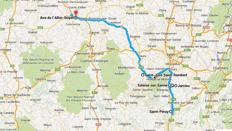 Moi qui ne savait pas si j'allais monter sur la RP ou descendre en Catalogne, j'ai été fixé rapidos, je vais nulle part ! Alors une fois après avoir filé mes 3 lots à Cyril, je peux decrocher et choper le frigo à Arthur pour monter demain en GB. En attendant, je recharge 3 clients pour le 42 ça m'apprendra ! Alors je monte bien tranquillement à Andrezieux ou j'ai la chance de pouvoir dormir à quai !