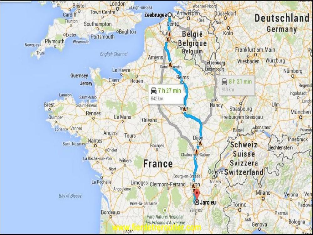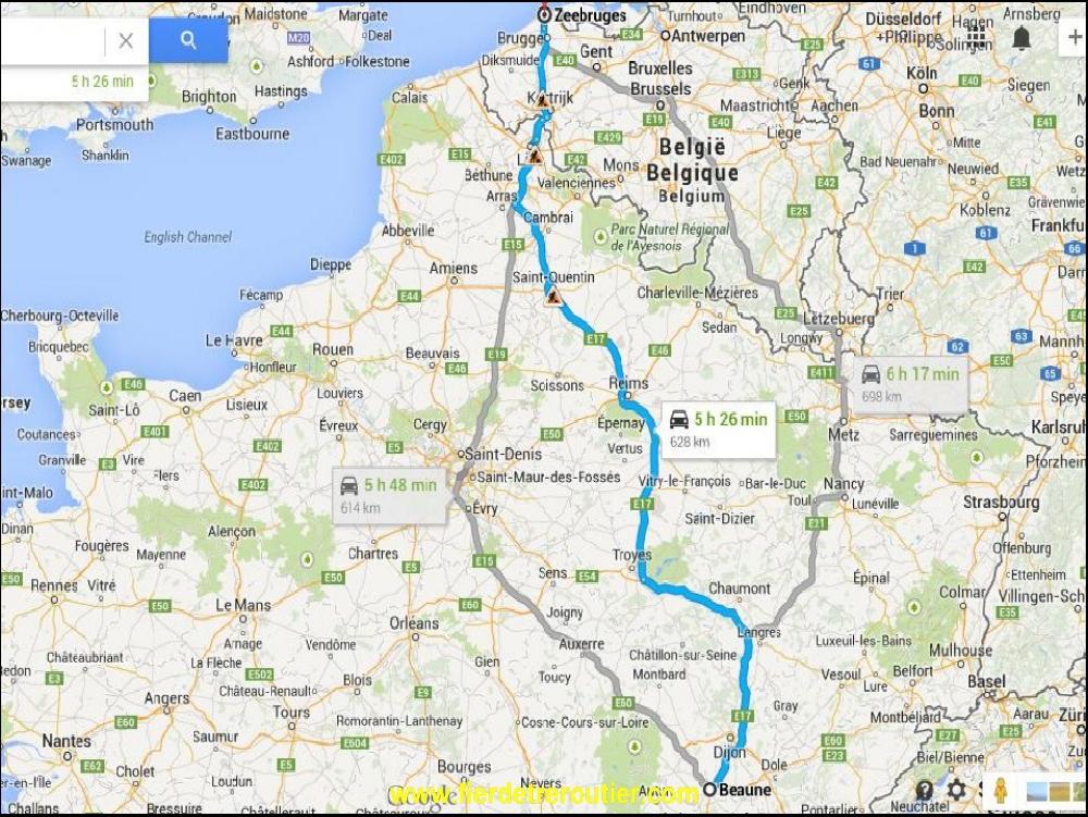 A 7h30, je reçois le message du matin, et je me dis que je peux encore squatter le paddock 30 minutes d'autant qu'il fait pas beau. A 8h mon reveil sonne, et je me dis que je devrais me lever afin de prendre mon petit dejeuner cabinal... Une demi heure plus tard, je suis calé à 84km/h sous un ciel qui me ressemble, c'est à dire bas de plafond. Je sais que j'ai largement le temps de monter pour être avant 20h à Zeebruge, alors je suis zen. Tellement zen que je me fais vite chier, mais heureusement nous vivons dans une société d'assistés ou on paye des impôts, qui accessoirement servent à raquer le service public j'en profite au max car je suis un auditeur sachant auditer culture. J'aime bien, je comprends pas toujours tout, mais j'aime bien, ils ont un gros chantier avec des clients comme moi... Plus je monte plus le temps est hésitant, soleil, pluie, il sait pas le ciel... Quand je déboule 4h plus tard au centre routier de Reims, il sait : pluie. J'empoigne mon vieux sac pourri et je vais me decrasser dans la douche pourrie du centre routier. Pourquoi je viens là, alors que je sais que c'est crade et pourri ? J'en ai pas la moindre idée ! C'est comme si on demandait à son chien pourquoi il pisse toujours au même endroit, c'est comme ça, une habitude de vieux con...