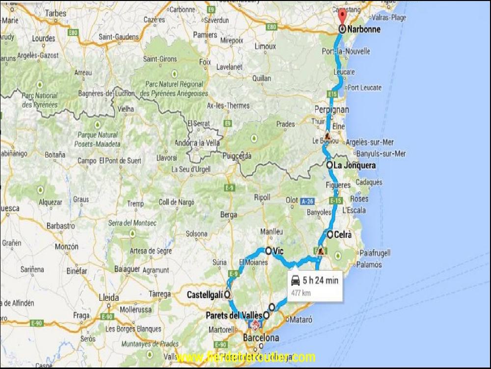 Mes 5 palettes pour Barcelone sont chargées vite fait bien fait, au moment de repartir, je reçois un autre message sur mon transic nokia 3310, j'ai encore 5 palettes ici à prendre mais pour le 95, puis aussi 2 autres lots dans l'entrepôt en face pour le 77 et le 78. Autant dire que ça fait flipper. Je remonte avec la boule au ventre, et au passage je prends une autre palette à Valence pour Sant Adria de Besos. Cassage de croutas régime à Isardrome et je peux rentrer tranquille le ventre plein et avec un bon paquet de CMR sous le bras au dépôt.