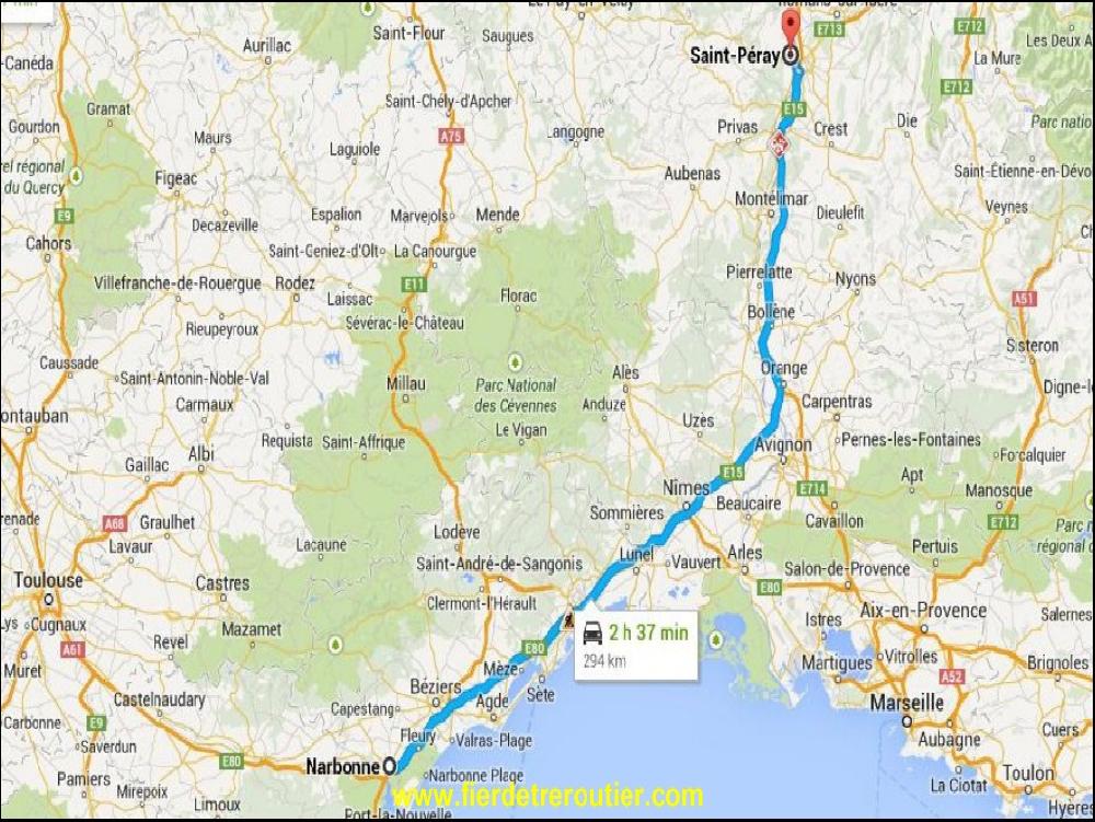 De retour au garage, j'apprends que les freins sont neufs... Ma foi, j'obéis aux ordres moi ! La suite de ma mission de ce lundi de reprise est simple, je dois aller charger 5 palettes à Montelimar, je descends par la natio, ce matin, ça roule pas. Mais c'était sans compter les travaux d'un nouveau rond point pour acceder à un super marché à l'entrée de Saulce. C'est vrai que ça manquait un supermarché à Saulce. Après y aura aussi un Mc Donald à Saulce, puis un KFC et on sera tous gros et gras comme les americains et on comprendra pas pourquoi !... Ce qui est sûr, c'est qu'on se donne les moyens devenirs tous fous !!!