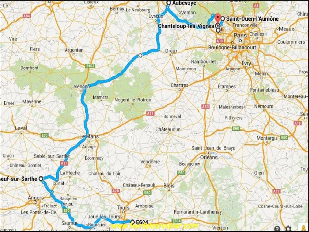 Comme je suis un garçon prevoyant, j'ai averti le client suivant à St Ouen l'Aumone, il attend mes palettes, ça alors !! Du coup, j'ai appelé aussi au centre d'essais à Poissy, en principe ils ferment à 15h45, mais le responsable m'a dit, t'inquiète, j'avertis le gardien, et tu auras deux gars pour vider. Ouh la la !!! Je comprends mieux qu'il pleuve autant aujourd'hui ! Après une traversée penible des Andelys, je trouve la N14 à peu près deserte, mais pas longtemps, arrivé sur Pontoise c'est le bordel, alors je vais vite poser St Ouen, 3€ de pourboire !!! C'est rare ! Je me suis annoncé pour 19/20h à Peugeot, alors je me planque en surveillant nerveusement Google Map en attendant que la carte tourne au vert. J'ai attendu jusqu'à 19h30, et impec pour rejoindre Poissy. J'y croyais pas, mais arrivé au gardien, il ma dit, ah oui, on nous a avert, allez vite vous mettre en place. Pincez moi, je rêve, y a tout qui fonctionne aujourd'hui !!! Du coup à 20h30 je suis vide, j'ai du mal à y croire, j'ai plus qu'à aller me caler tranquille à Chanteloup les Vignes, je me gare comme je peux face à mon client, impec, bien content !