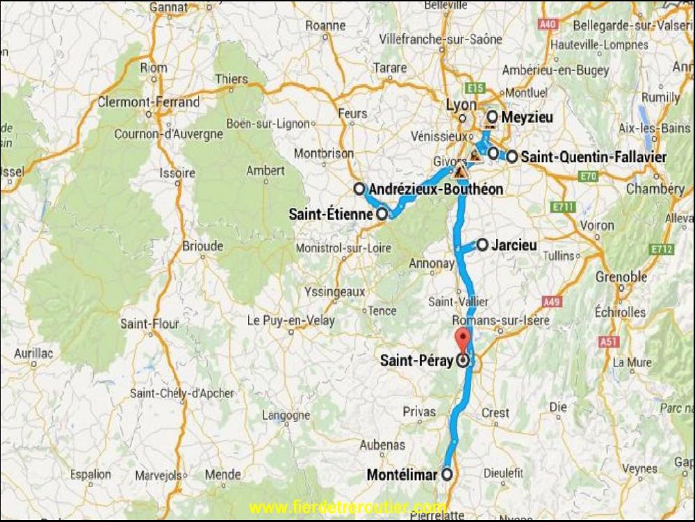 Le GPS me dit qu'il faut d'ici 3h45 pour rejoindre Salaise, il me reste 3h55. Facile. Sur l'A9 on annonce pas mal d'acidents et les bouchons qui vont avec, un sacré balaise à Beziers avec 3 camions et un autre à Vendargues avec un camion tout seul, c'est pas la fête du camion, on va encore bien morfler dans le MIDI-LIBRE. Là, les comms sont un peu moins High Level que dans Telerama. J'espere que les gars ont rien, ça a été vraiment violent à Beziers... De mon côté toutti va bene, tant et si bien que je deboule avec 8h49 à Salaise, pfiouhh, demain, il pleut c'est sûr !