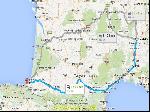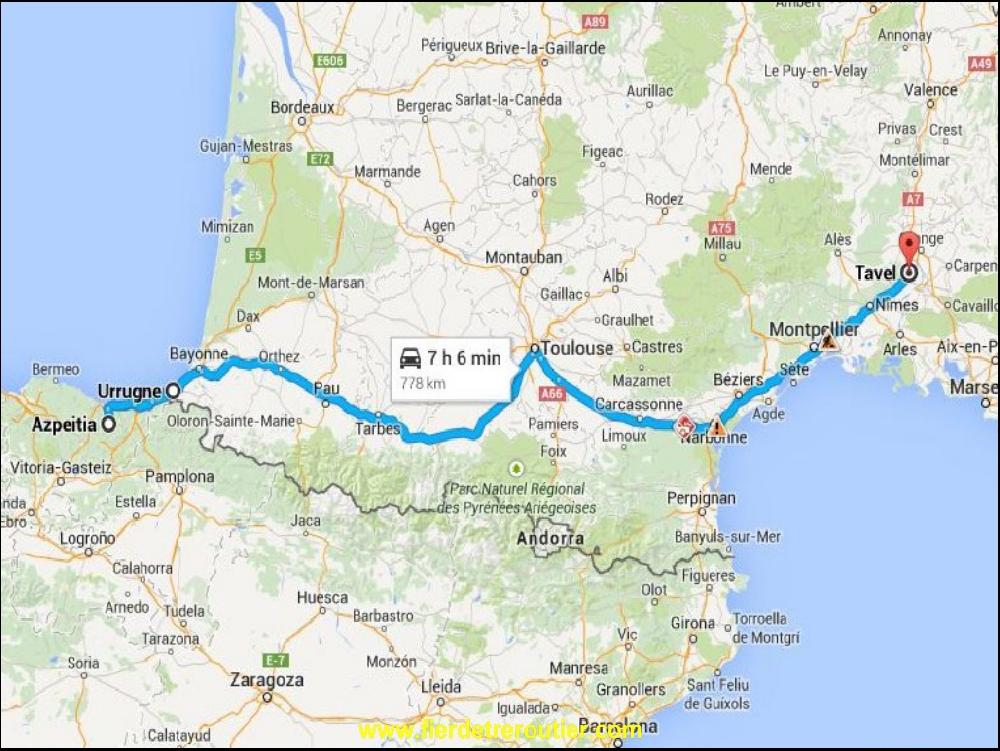 Je le savais que j'aurai pas dû m'arrêter ! Après manger, je suis particulièrement mort, la digestion et le manque de sommeil, ça va pas ensemble. Les lumières et le trafic sur Toulouse mettent un peu d'animation, ensuite c'est arhi mort sur l'A61. J'ai beau zapper de CD, de radio, manger des clems, ouvrir le carreau, rien à faire. Je m'arrête au niveau de Castelnaudary, je dors un quart d'heure sur le volant, je suis même obligé de renouveller l'opération après Narbonne ! Finalement je finis par arriver par je ne sais quel miracle à Tavel à 4h50. Y a toujours de la place sur le parking des camping cars, à 4h51 je ronfle déjà.
