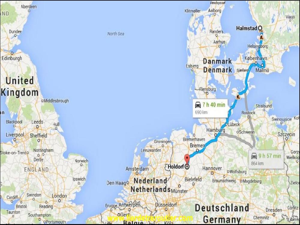 6h30, j'extirpe ma carcasse du plumard, j'attrape mon plus beau sac Intermarché et je file à la douche 5 étoiles. Ah on fait toujours sensation avec un sac Intermarché, pourtant ça coute pas cher... Par chance ce matin, ça va nettement mieux, bien que je sois toujours courbaturé, je marche comme un petit vieux, ça me fait rire. Et puis je m'en fous, personne me connait ici. Coup d'oeil à Google Map, tout est au vert, sauf la traversée de Hamburg, mais ça a le temps de changer. Je peux même dire que ça a bien roulé ce matin, d'autant que certaines longues zones de travaux ont disparu ce qui ne gâche rien. Ce matin, c'est bien morne, il y a un vent d'enfer, on alterne, pluie, soleil, vent pluie, vent soleil. Je passe largement Hannovre en moins de 4h, et je coupe mes 45, ça bouchonne toujours depuis ce matin à Hambourg.