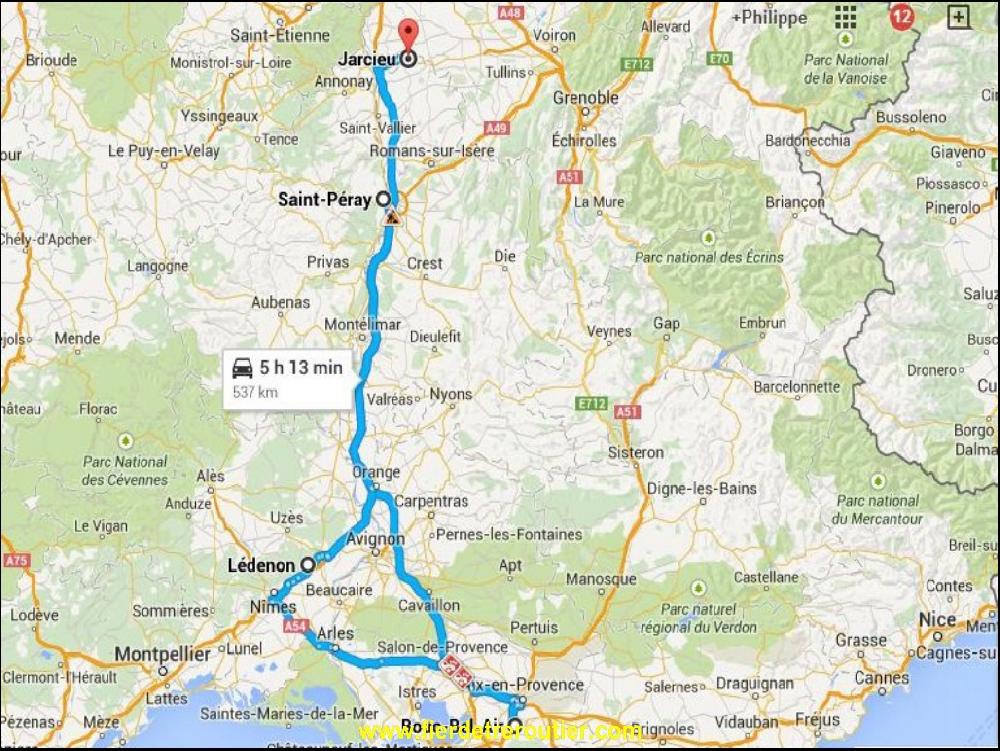 C'est sous un soleil magnifique et un trafic tranquille que je longe le magnifique Etang de Berre pour rejoindre Le Gard, un petit coucou à Seb Larage le jeune papa en Arles, et je débarque à 12h15 au chargement à Ledenon, pile poil pour faire la sièste dans un calme absolu avec les carreaux legerement entrouverts, ça fait une sièste 4 étoiles.