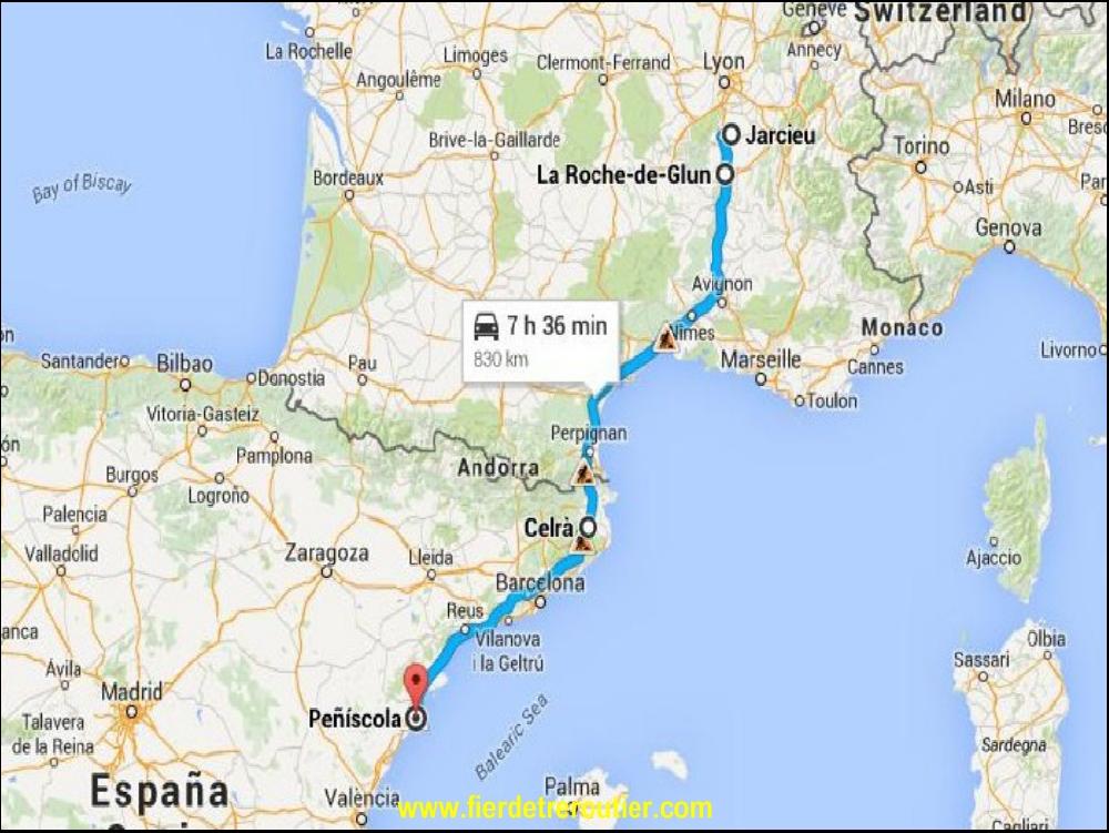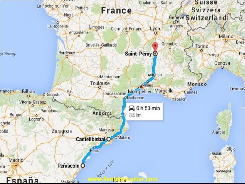 Une fois vide, j'ai un nouveau message "Chassieu annulé" Youhouh !!! Le bon dieu est de mon côté !!! Finalement retour au dépôt, quai 5 pour une coupure bien méritée. D'un complet Montelimar Sangles à Gogo, je me retrouve avec un Girona/Barcelone qui se transforme un peu plus tard en un Girona/Peniscolà ! Mais c'est nickel tout ça !!! J'en reviens pas le coup de cul que j'ai sur ce coup-là. D'autant plus que le lot de Peniscolà est à prendre au vol demain matin à La Roche de Glun, je peux donc prévoir de passer une bonne nuit au plumard ce soir. Je me laisse même aller à fumer une clope avec Franck, ma première en 2 mois !