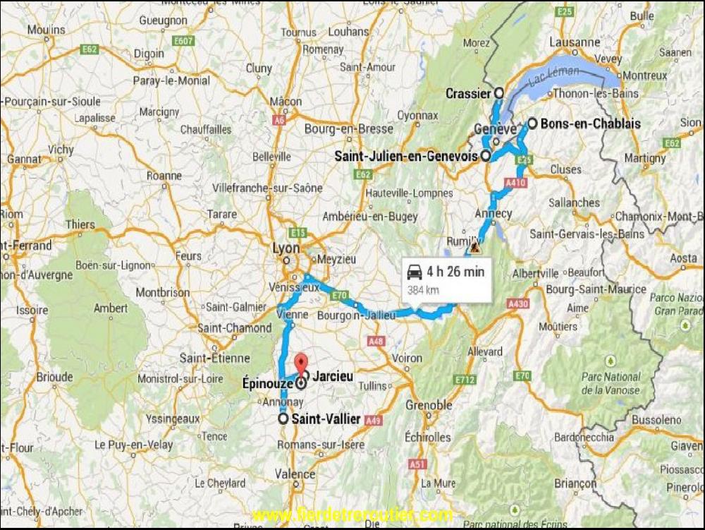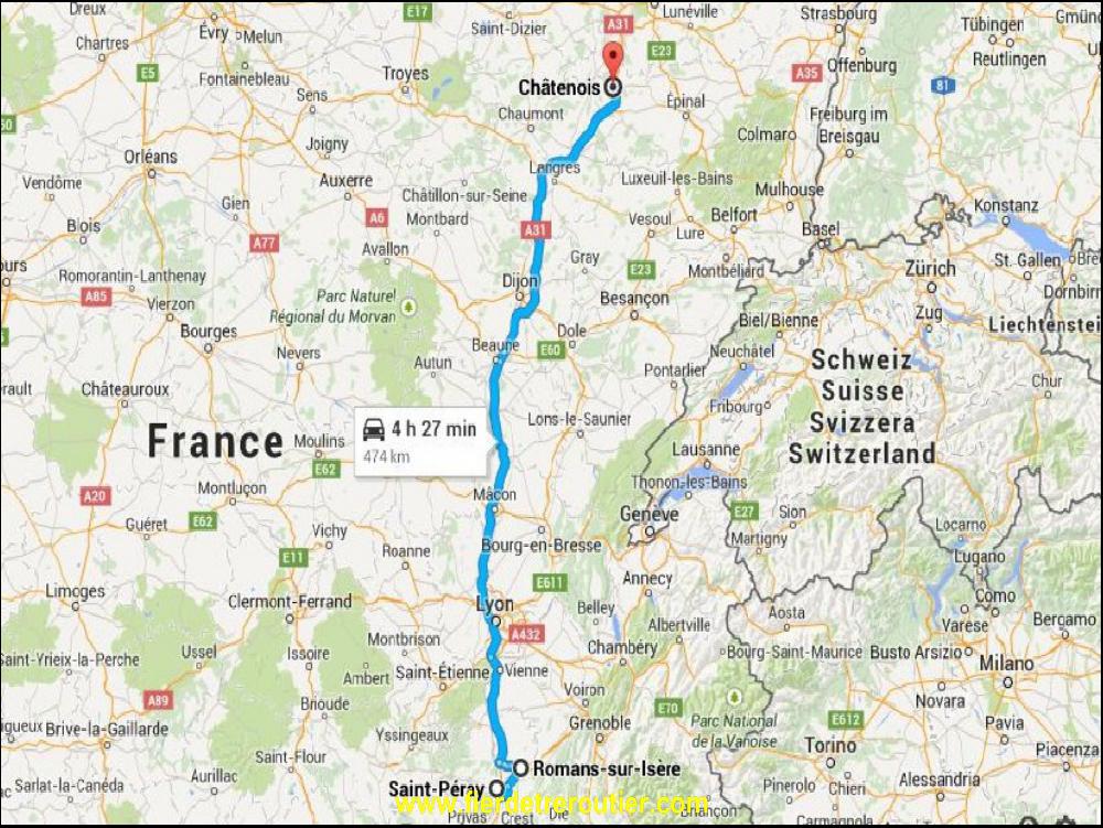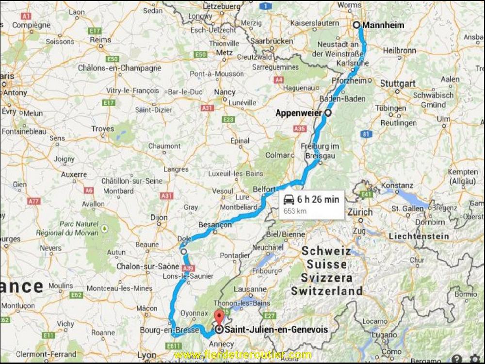 Du coup, vu que ça s'est super bien passé ce matin, il y a juste un bug dans l'ordinateur et j'attends quasi 2h les papiers, c'est long. Entre temps, le route a seché, c'est déjà pas mal. Malgré le retard pris, je m'octroie royalement une demi heure à la douche juste avant Ottmarsheim. J'avais tapé St Julien en Genevois dans mon GPS, mais lui il s'en fout des douanes et de la RPLP, depuis Ottmarsheim il m'annonçait moins de 4h, j'aurai même pû vider en foulée, mais non, ça serait trop facile. Alors je contourne bien sagement la communauté Helvetique pour traverser notre France par l'A36 et l'A39 ou le soleil ne sera pas de la partie aujourd'hui encore ! Je finis enfin par ma caler au parking TIR à St Julien à 19h45, la coupure risque d'être bonne !