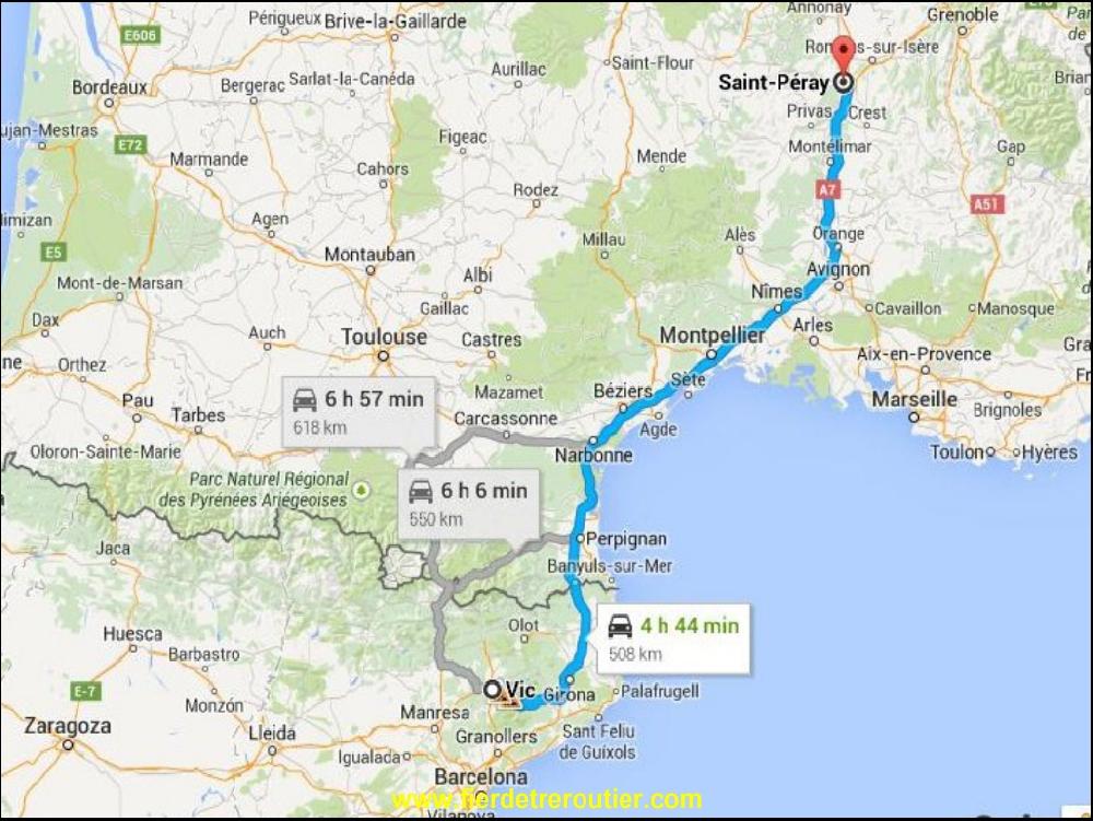 Pour finir la semaine, j'ai un complet de Polystirène à charger à Vendargues, je me dis que c'est mort pour charger avant midi, sauf que, à midi ça charge ici ! Devant moi, y a David de La Routière du 63, on se croisait sur internet, et maintenant on se croise en vrai !! C'est cool ça ! J'ai donc plus qu'à remonter tranquille sur une A9 et A7 ou je croise des célèbres FDR comme Manolo et Larage, la route est surchargée de pauvres qui partent systematiquement par le moyen le moins polluant, la voiture individuelle. Un peu de gasoil en passant à la Total de Montelimar ou Greg n'est pas et je me radine à la maison, il est.... 17h !