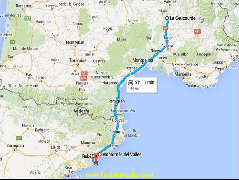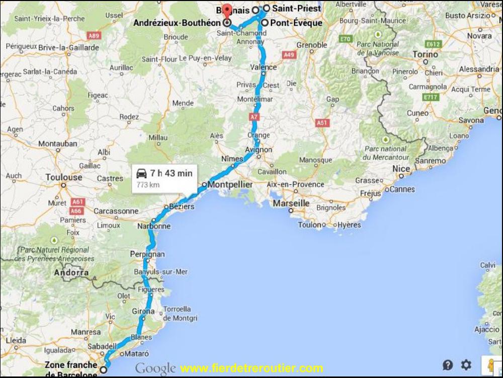 Pour finir ce joli lundi, je pose les plantes à Anjou et tout le reste de mon merdier au dépôt. En même temps, le chef me confie une mission routinière et basique chez nous, 4 livraisons sur Barcelone. Mais je pars bien trop tard, à 20h10 du dépôt, j'ai même pas eu le temps de laver l'attelage, tant pis. Je me pose à La Coucourde, au calme et pensant à tous ces malheureux qui viennent se noyer dans la mediterannée pour fuir leurs misères et esperer offrir une vie meilleure à leurs enfants.