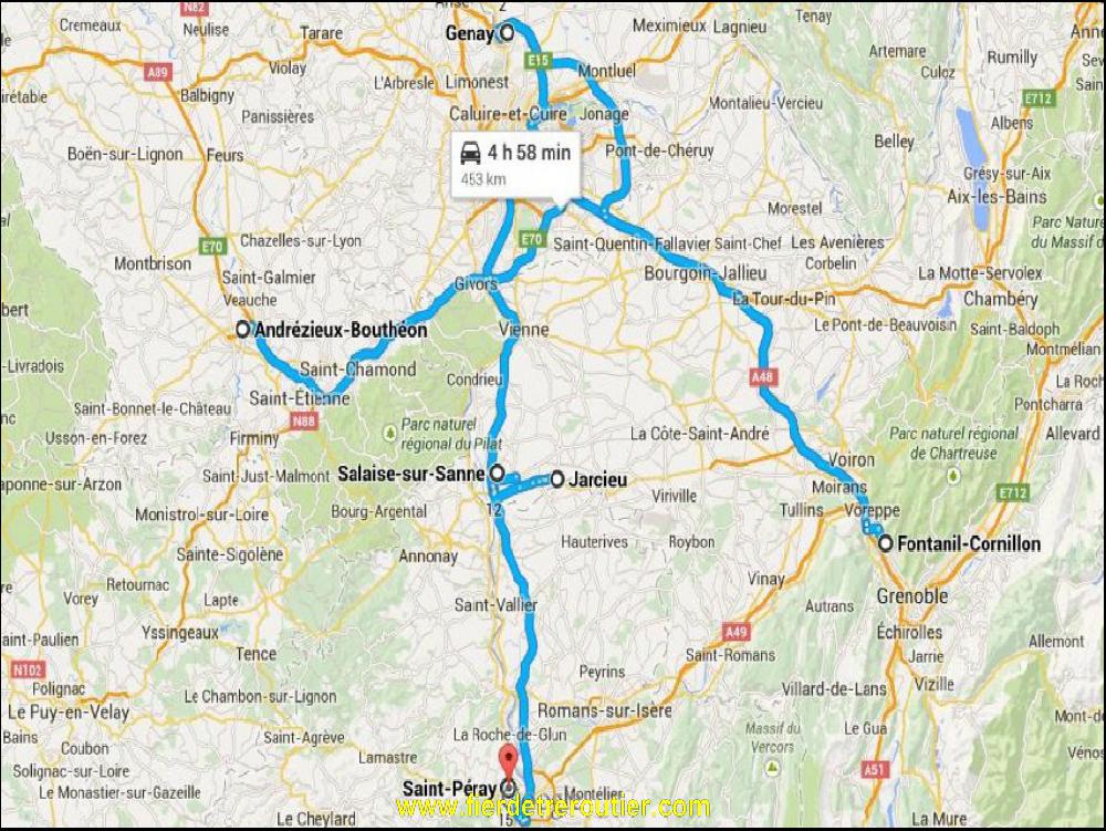 C'est à Brignais que j'attaque ma tournée, 4 coups de fourches, un pipi, un café, 11 minutes ! LOVE ! Je tente donc mon joker pour faire St Priest avant midi, vu le bordel qu'il y a à sortir, ça va grogner. Mais en fait trop pas, c'est des bons chez Bessenay. Presque 1h pour vider, mais vu le merdier, on peut considerer que le cariste a été bon. De là, il ne me reste plus qu'à rejoindre Vienne pour y poser mes 6 enormes bobines après avoir cassé une graine parce qu'on est pas des chiens. Je decouvre la suite via un message sur mon Nokia 3310. Rechargement en groupage à Andrezieux pour Grenoble ! C'est ça qu'c'est bon ! J'ai pile poil de quoi monter en moins de 10h de volant, moins de 13 d'amplitude, poser la semi quai 33 et mon taxi à l'ombre d'une magnifique Tautliner à Norbert. Une journée TIP TOP ! En plus il y a un petit vent qui va se charger de me chatouiller les orteils pendant la sièste !!! I LOVE MY JOB !