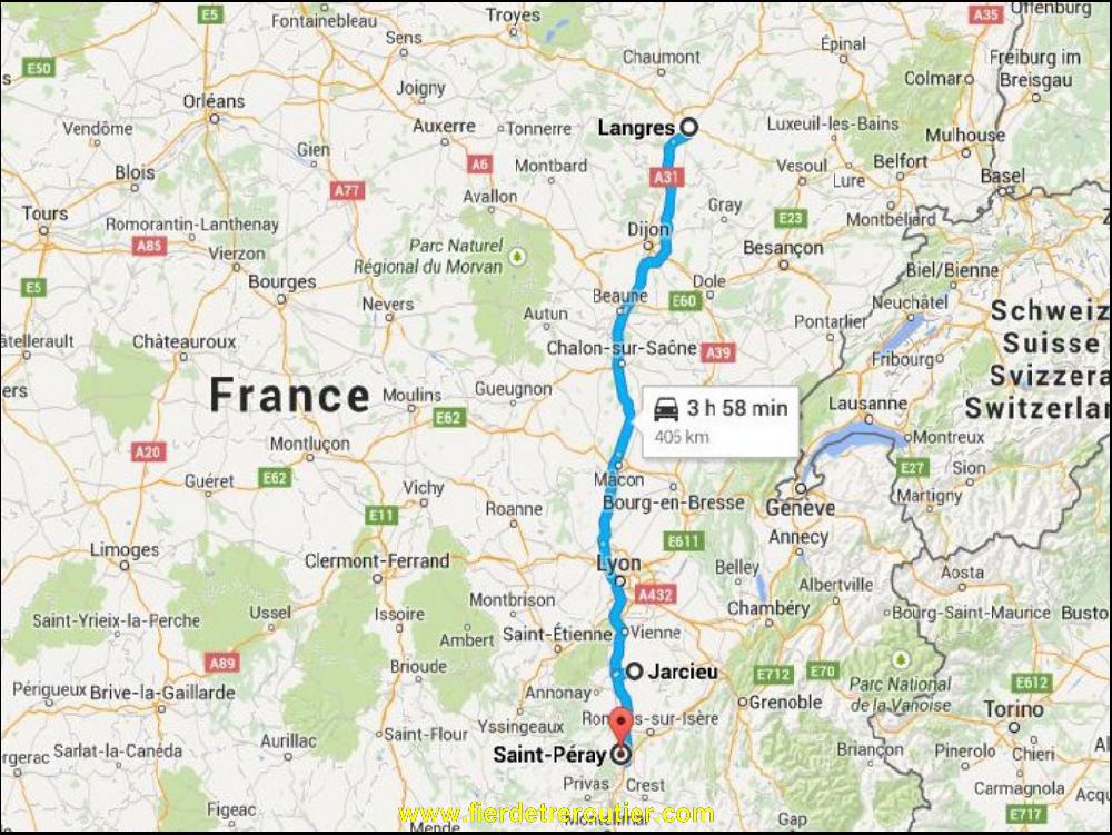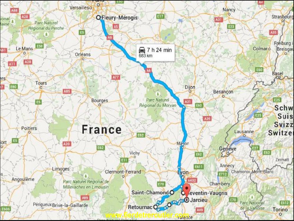 Pour rentrer, j'ai pas d'autre choix que de couper à travers champs par Ste Sigolène, le col du Tracol et Bourg Argental. Je prie St Christophe de me venir en aide, et j'ai été entendu, puisque rien a bougé, et pourtant je me suis donné la peine ! Y a que les bobines qui ont un peu bougé, c'est Ludo qui me l'a fait remarqué, mais c'est juste parce qu'il y voit pas bien ! Je refile les tourêts à Régis qui en chie comme un Russe de couleur pour faire son chargement, je préfère le laisser se demerder, il faut pas rayer les parois du camion remorque à l'interieur !! ça me rappele un type qui enlevait même pas les housses plastique neuves de ses couchettes. Quant à moi, je recupère un frigo, chargé pour Blois et Silverstone, tranquille !