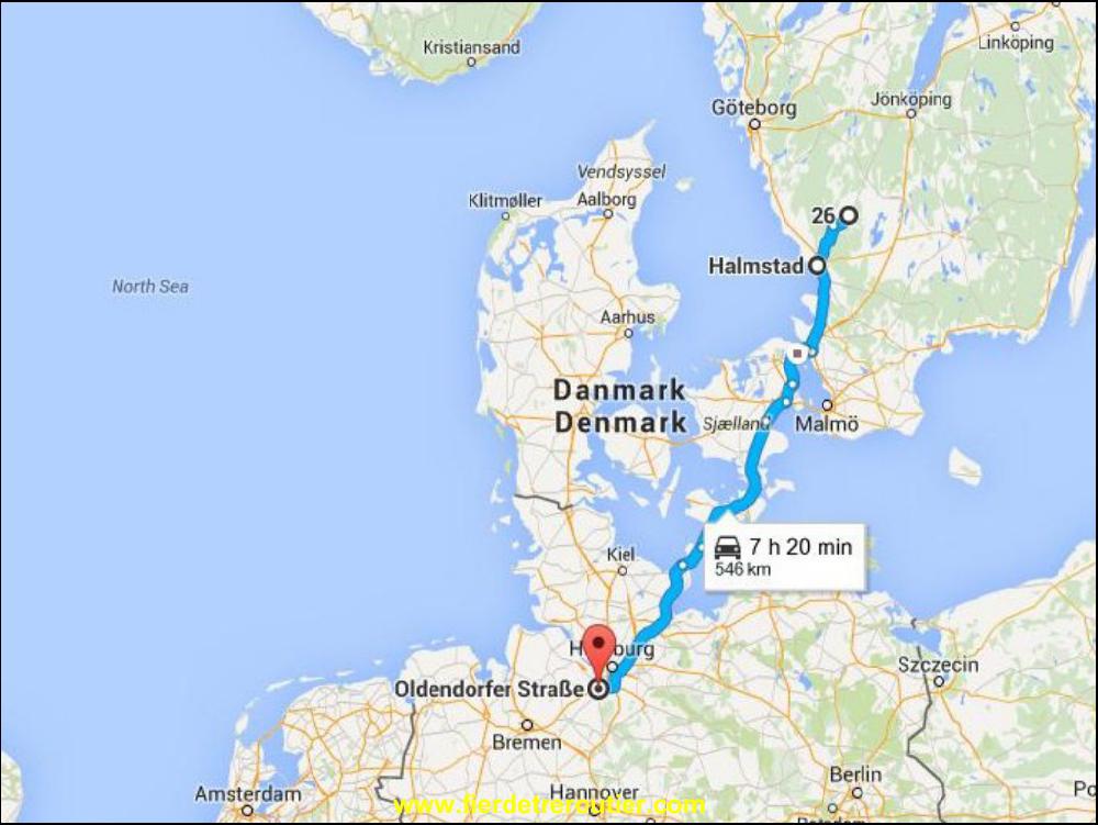 D'ailleurs j'ai craqué, plusieurs fois j'ai doublé dans les coins de Kassel, et plus haut sur l'A7, là, il y avait encore 10km de trafic arrété à cause de travaux gigantesques. Par chance il y avait une sortie avec le panneau U, ça veut dire deviation, et j'ai suivi U Hannover, c'était joli, ça m'a destressé un peu, mais j'étais pas le seul cretin a avoir cette idée. Mes espoirs de rejoindre Lubeck en moins de 4h30 se reduisent au fur et à mesure que j'avance, bien que la traversée de Hambourg se passe miraculeusement comme des roulettes. Un carton après Hambourg, et ça été la misere sur encore 10km, et obligé de couper 45 minutes, c'est la vie !!! Tant pis pour les 9h. Pendant la coupure, je me suis amusé à regardé si c'était encore jouable via le Danemark, j'avais 1h15 de marge, trop court ! Et puis ma quatorzaine commence à rougir.