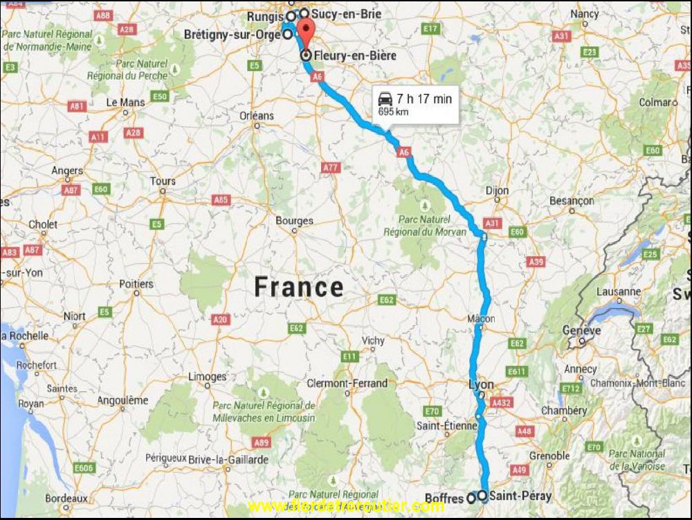 Ce matin, il y a encore pas mal de trafic avec les retours du pont, et faute à pas de chance juste après Auxerre sud, il y a un 4 roues qui s'est couché, pile poil à la perpendiculaire de l'A6, il bloque tout trafic, derrière il y a un bouchon enorme, 107.7 annonce bien le depanneur sur place, mais il y a personne, c'est des gros menteurs sur 107.7 ! Je casse une graine quand même vite fait, pendant que j'apprends que j'ai une ramasse à faire à Sucy En Brie avant 15h. Or 15h c'est l'heure à laquelle je serai vide à Rungis. J'averti le client, qui est pas trop con, il est OK pour 15h45 maxi. Par chance, quand j'arrive chez Fargier il y a de la place et je vide direct, en une demi heure c'est fait, et je fonce à Sucy. Coup de bol, ça roule encore à peu près bien sur l'A86 ! La palette est vite chargée et heureusement, parce que je dois tout retraverser pour aller à Bretigny/Orge. Moi qui comptait faire une 11h ce soir, c'est mort... J'ai presque pas eu de bouchons, juste des ralentissements normaux, respire !