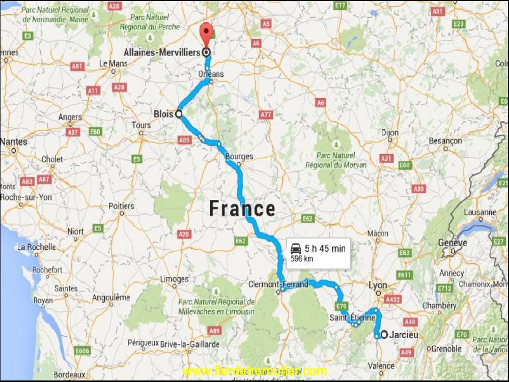 Qui dit nuit à Jarcieu, dit pas dormir beaucoup. Je demarre, fracassé à 4h après avoir pris le café avec mon Régis préféré. Lui descend au pays Basque, de mon côté j'ai une traversée du massif central qui m'attend. Vu l'heure matinale, ça roule nickel, c'est toujours ça de pris. Pour aller à Blois, j'ai quand mêm le choix entre 3 itinéraires. D'office je raye le passage par la RCEA, et j'hésite à Balbigny en même temps que les premières lueurs du jour. Oui, j'hésite parce que même à 80 en ADR sur la natio ça commence à faire trop. Et je suis préssé un peu quand même. Donc, je garde l'autoroute par Clermont, en plus c'est joli le Sommet du Puy de Dôme quand le soleil se lève. Ok, vous êtes Auvergnats et vous allez me dire, le Puy de Dôme, c'est joli tout le temps, et c'est pas faux. Plus je monte moins il fait beau, il se met à pleuvoir copieusement quand je passe la fronyière avec le Berry. Café douchas fritas à Bourges, 10h, c'est la bonne heure, juste après le passage de la femme de ménage !